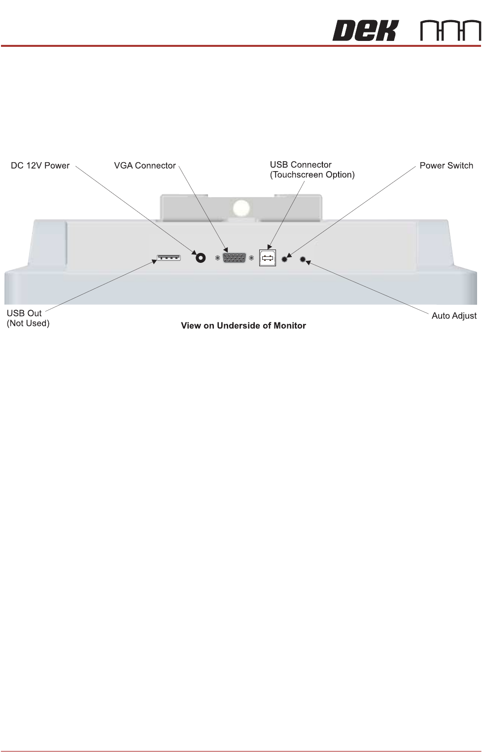 PRINTER PREPARATION PRINTER ASSEMBLY 4.40 Installation Manual Chapter Issue 15, May 20 9. Connect the following cables to t he monitor: • Monitor Power Cable (DC) •V G A C a b l e • T ouchscreen Cable (USB) 10. Fit the r…
