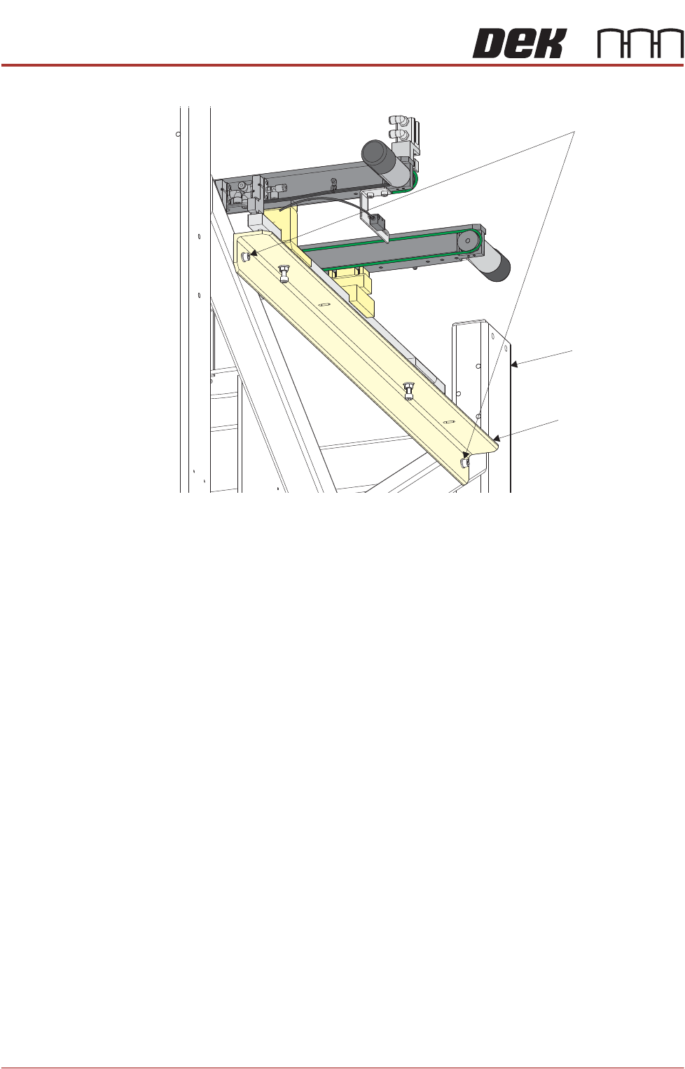 1. Remove the four auxiliary conveyor securing bolts from the holes in the