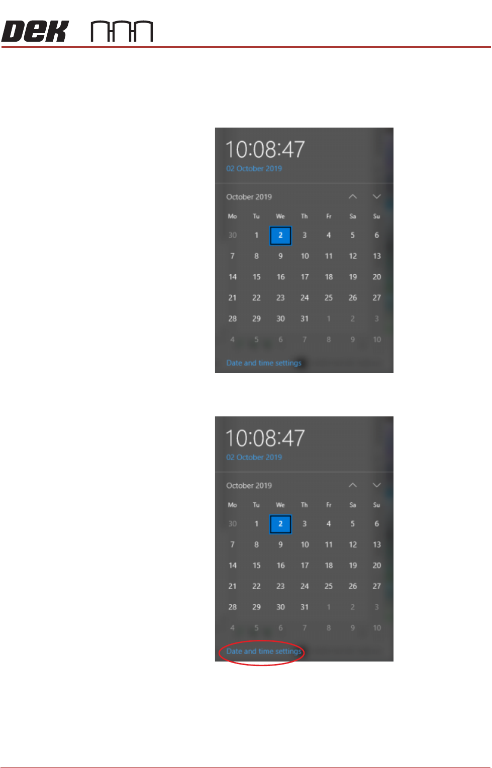 1. Select the clock displayed at the right hand side of the Windows taskbar.