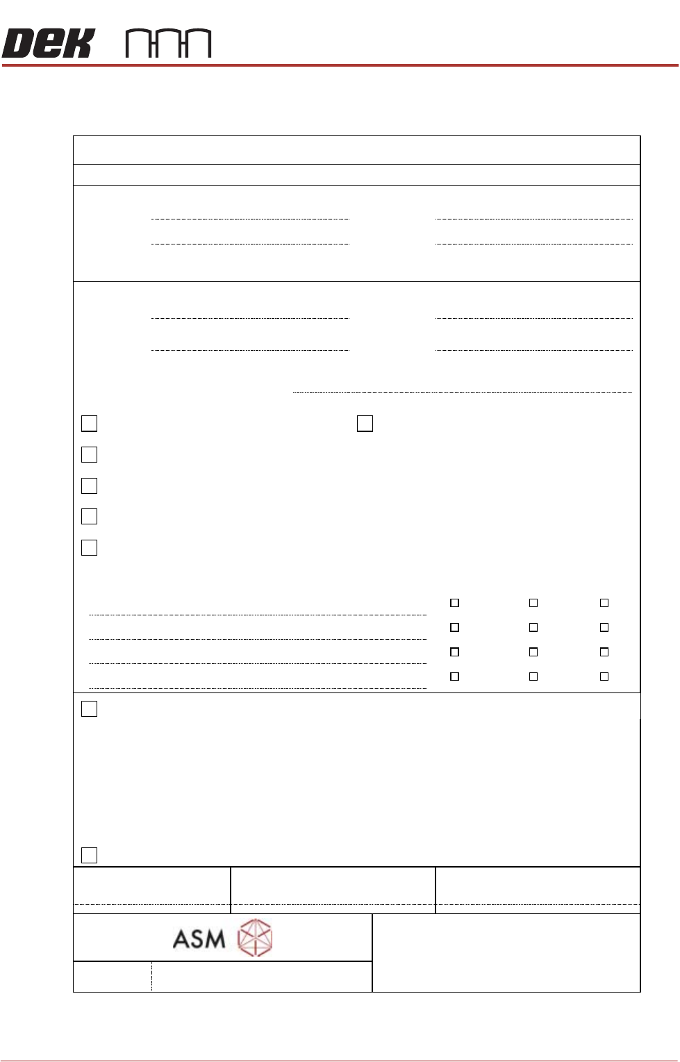 Ort, Datum / Location, Date Unterschrift / Signature ASM AS Engineer Unterschrift Kunde / Signature Customer