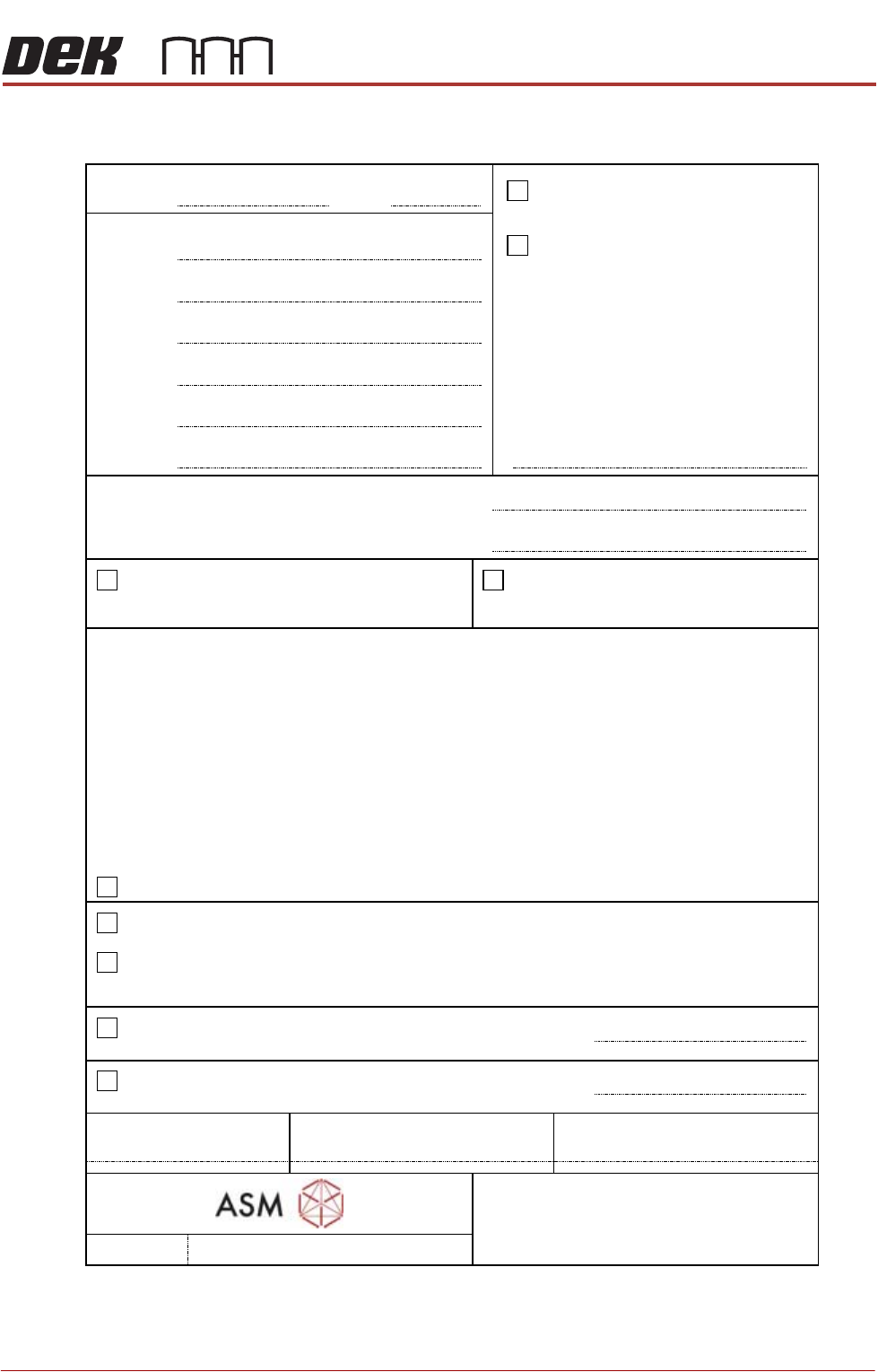 Ort, Datum / Location, Date Unterschrift / Signature ASM AS Engineer Unterschrift Kunde / Signature Customer