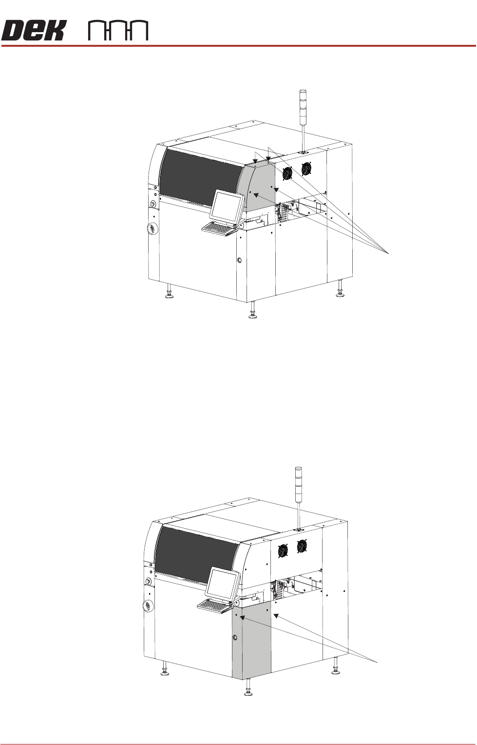COVERS PRINTER COVERS 2.38 Installation Manual Chapter Issue 12, Feb 18 MMI Arm Panels T o remove the MMI Arm panels, carry out the following: 1. Open the front pr inthead cover . NOTE 1. Before an MMI panel can be remov…