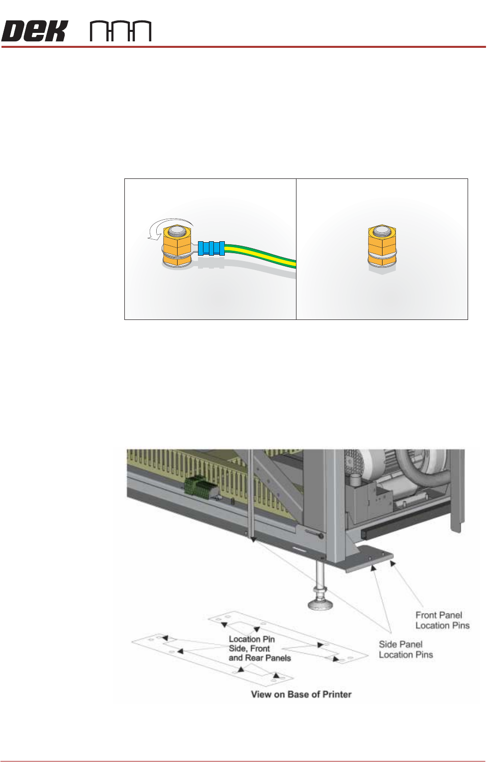 location pins that locate the panel to the printer frame, taking care not to