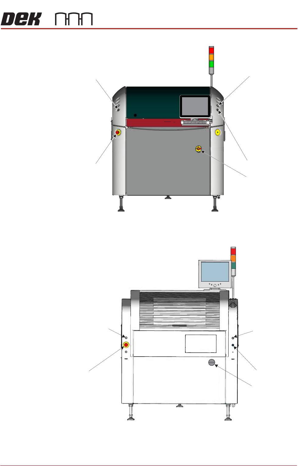 SAFETY FEATURES GENERAL 1.12 Installation Manual Chapter Issue 15, Nov 19 Figure 1-4 T ype 4 View on Front of Machine Left Jog Button E Stop System Button Mains Isolator