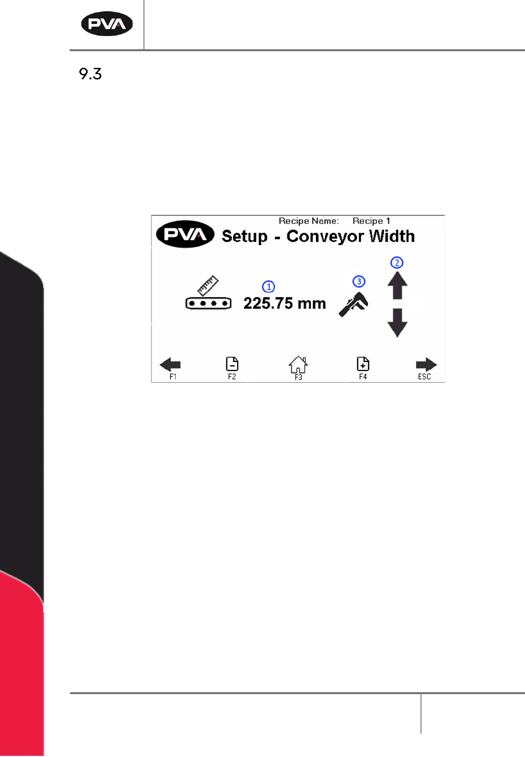 2. 113B112B112BIf the width value is unknown, press the arrows to use the Auto Adjust Conveyor