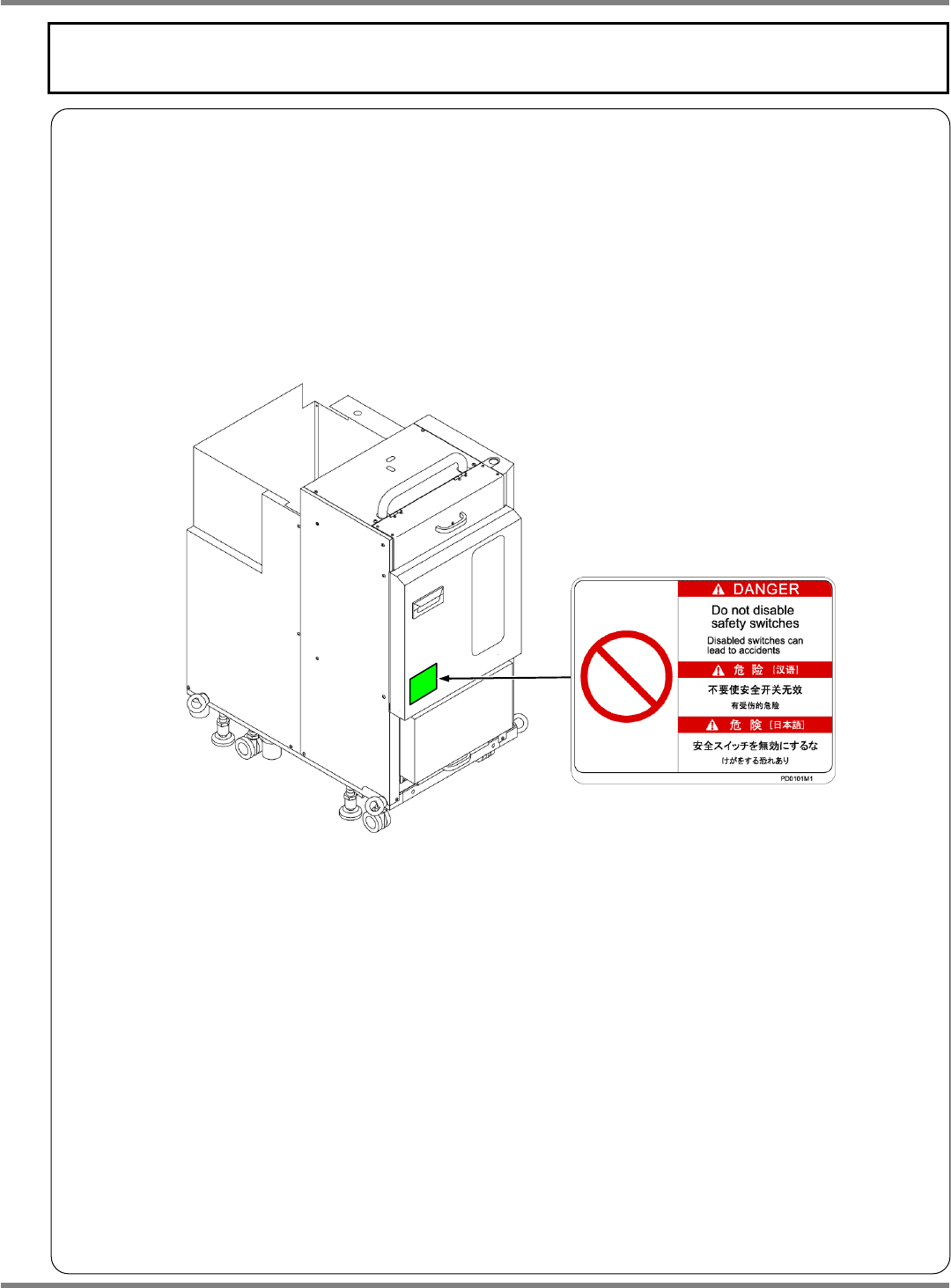 NPM-D 安全注意事项 Page S-28 EJM1DC-SF-02N-00 产品上的安全标牌 托盘供料器 ( 选购件 ) 警告标牌 如下图所示,本机器贴有警告显示标 牌。请遵守标牌的指示。 标牌脱落时,请参照 Parts List ( 元件一览表 ) 的标牌型号,向本公司订购并 将其重新粘贴到正确的位置 。 托盘供料器的警告表示标牌粘贴位置 N610074920AA 内藏电机