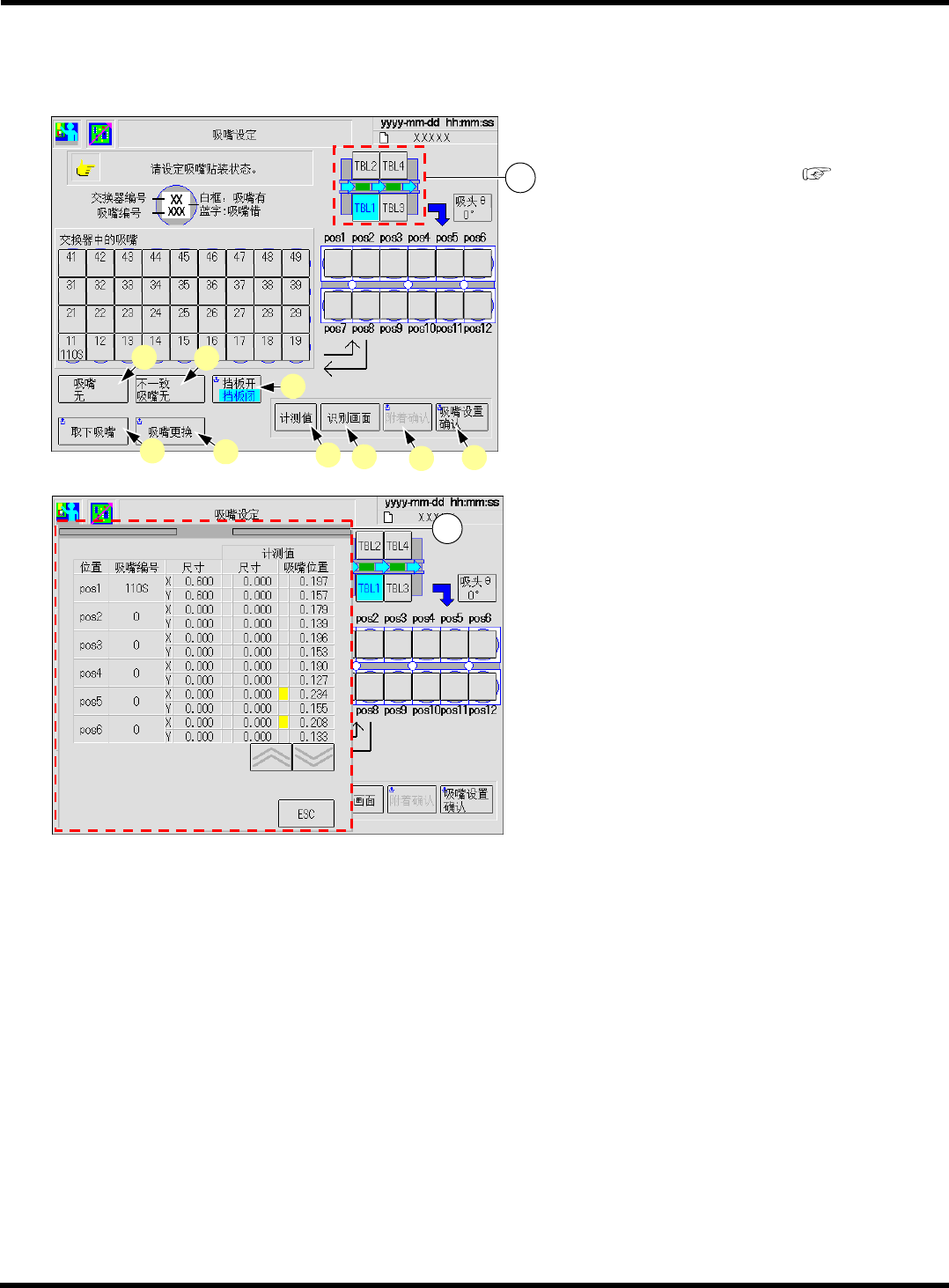 除了各吸头上的吸嘴外,还显示设置在吸嘴交换器上的吸嘴名称,并能够进行吸嘴的更换动作。