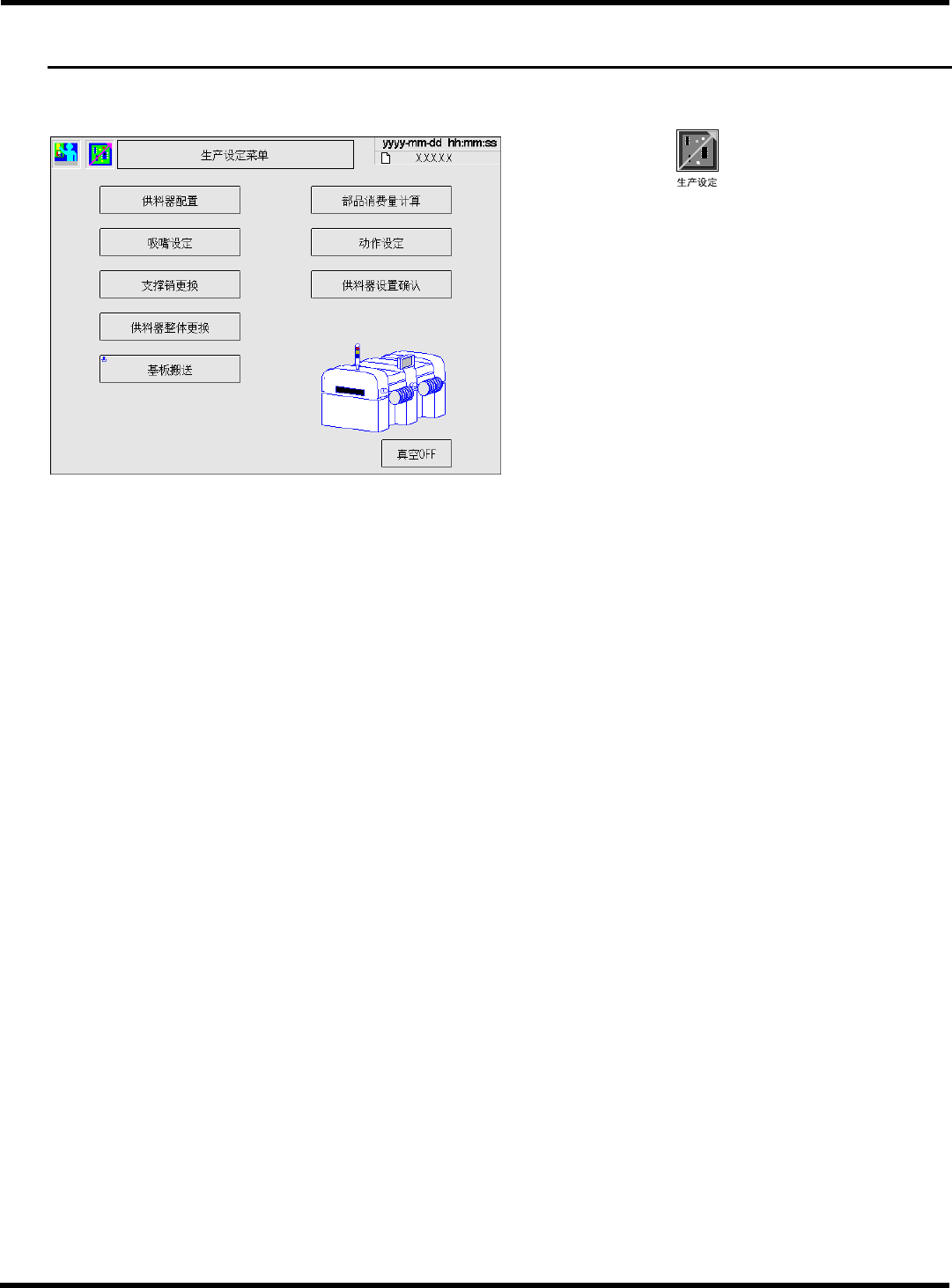 生产设定画面将被显示