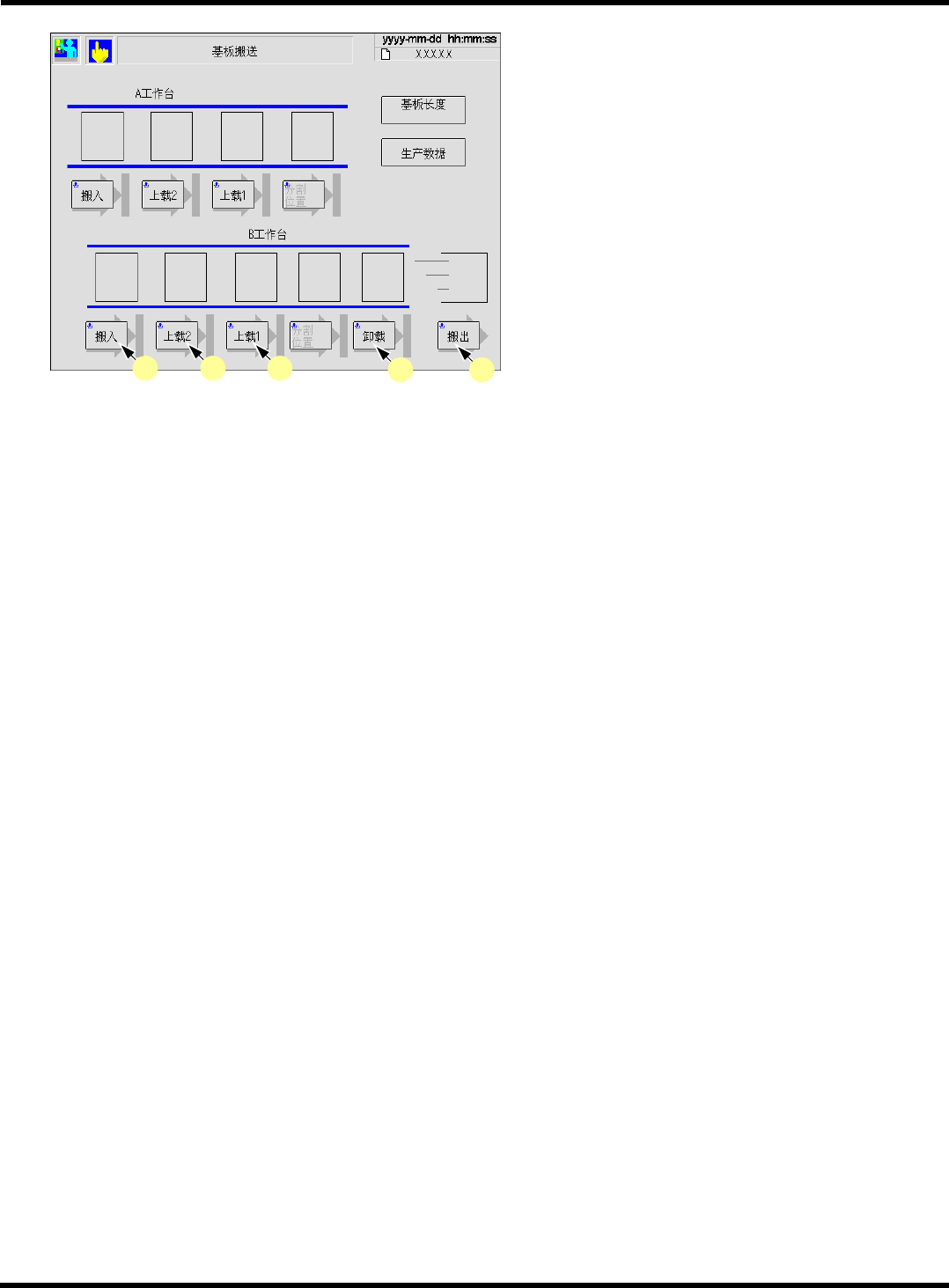 传送带上的基板用绿色的长方形表示,移动过程中闪烁显示。