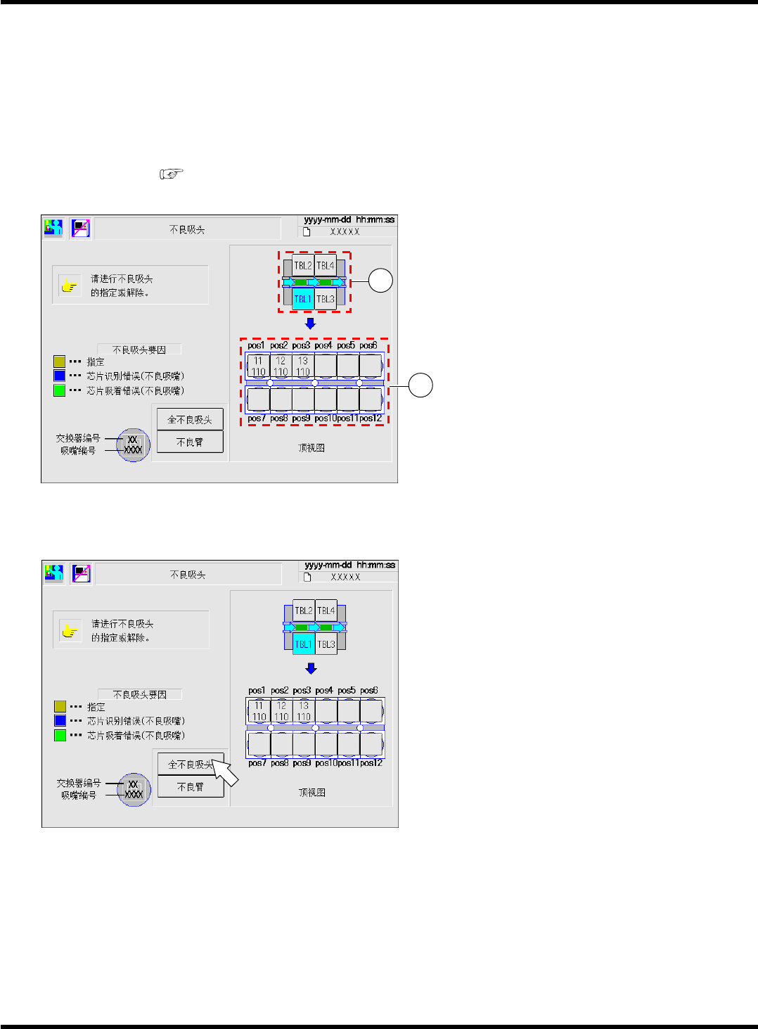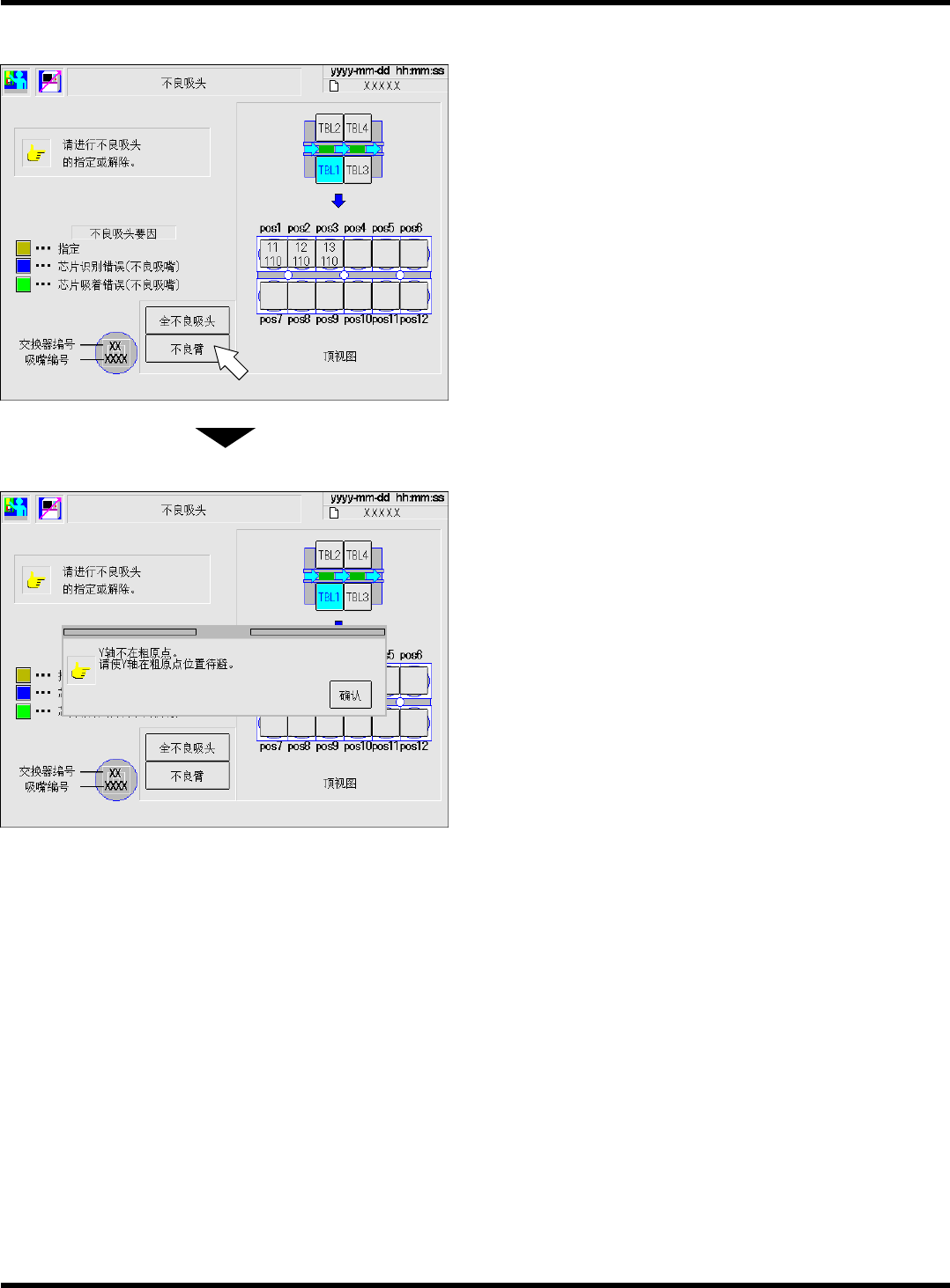 不良吸嘴不进行生产。确认后解除时,按要解除的吸嘴的按钮。按钮返回到正常颜色