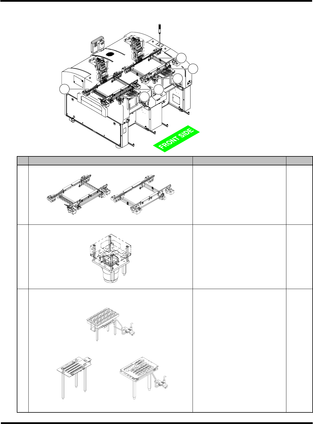 CM602-L 参考手册 1.1 各部的名称和功能 Page 1-4 2. 后视图 No. 装置名称 功能 数量 参照 状况显示灯 (3 段信号塔 ) 显示本机的运转状态, 运转中如果发 生异 常, 报警器鸣响报 警。 用音量调节钮调节 报警器的音量。 1 下述 调节器旋钮 ( 盖内侧 ) 调整供给气压。 1 操作手册 工作台显示灯 EJM4A -019P 出现部品用完或者故障 的工作台的显示 灯闪烁。 自动运转中 ·灭灯 …