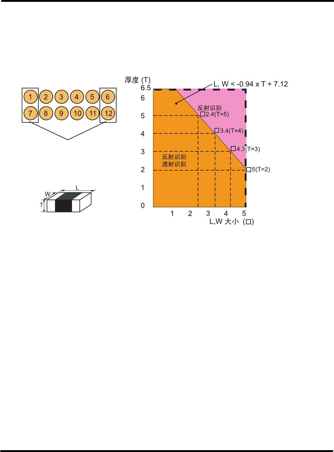 透射识别对象的部品大小有限