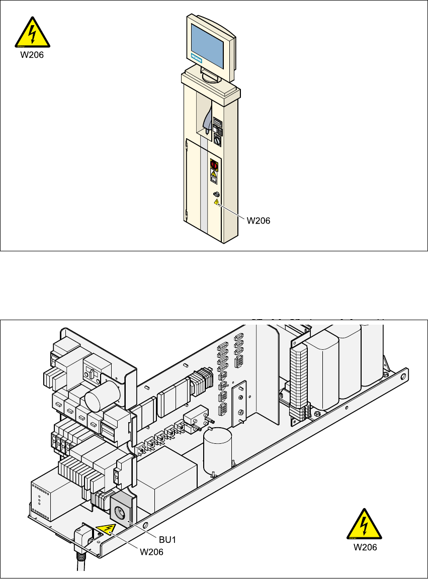 2.2.4.1 Chapa de aviso W206 na porta para alimentação da corrente elétrica