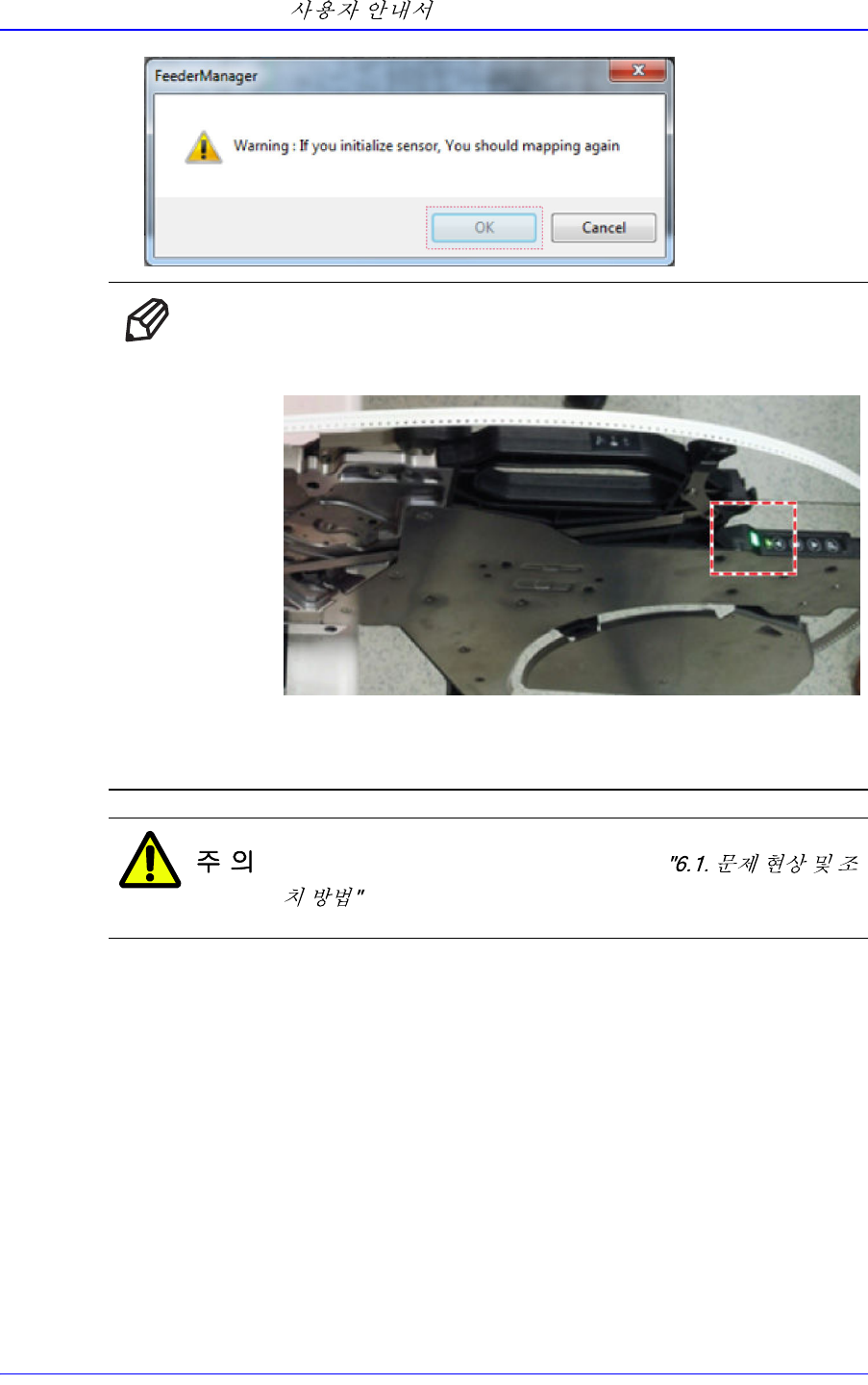 피더의 부품 공급 정도가 나쁘거나 피더의 센서초기화를 한 경우에는 다음과 같이