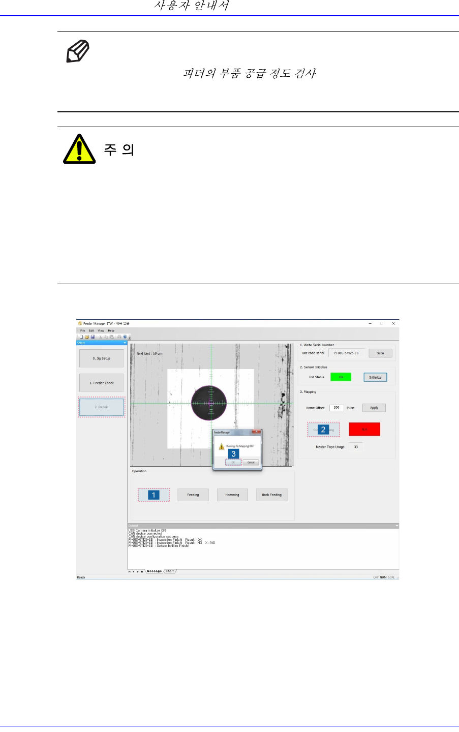 피더의 부품 공급 정도가 나쁘거나 피더의 센서초기화를 한 경우에는 다음과 같이