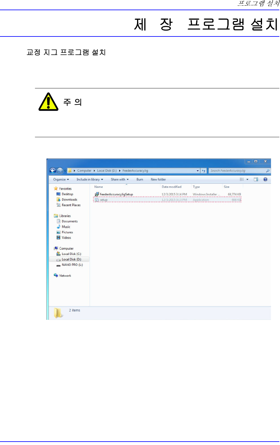 교정 지그 프로그램은 USB와 함께 제공됩니다. 다음 절차에 따라 프로그램을 설치