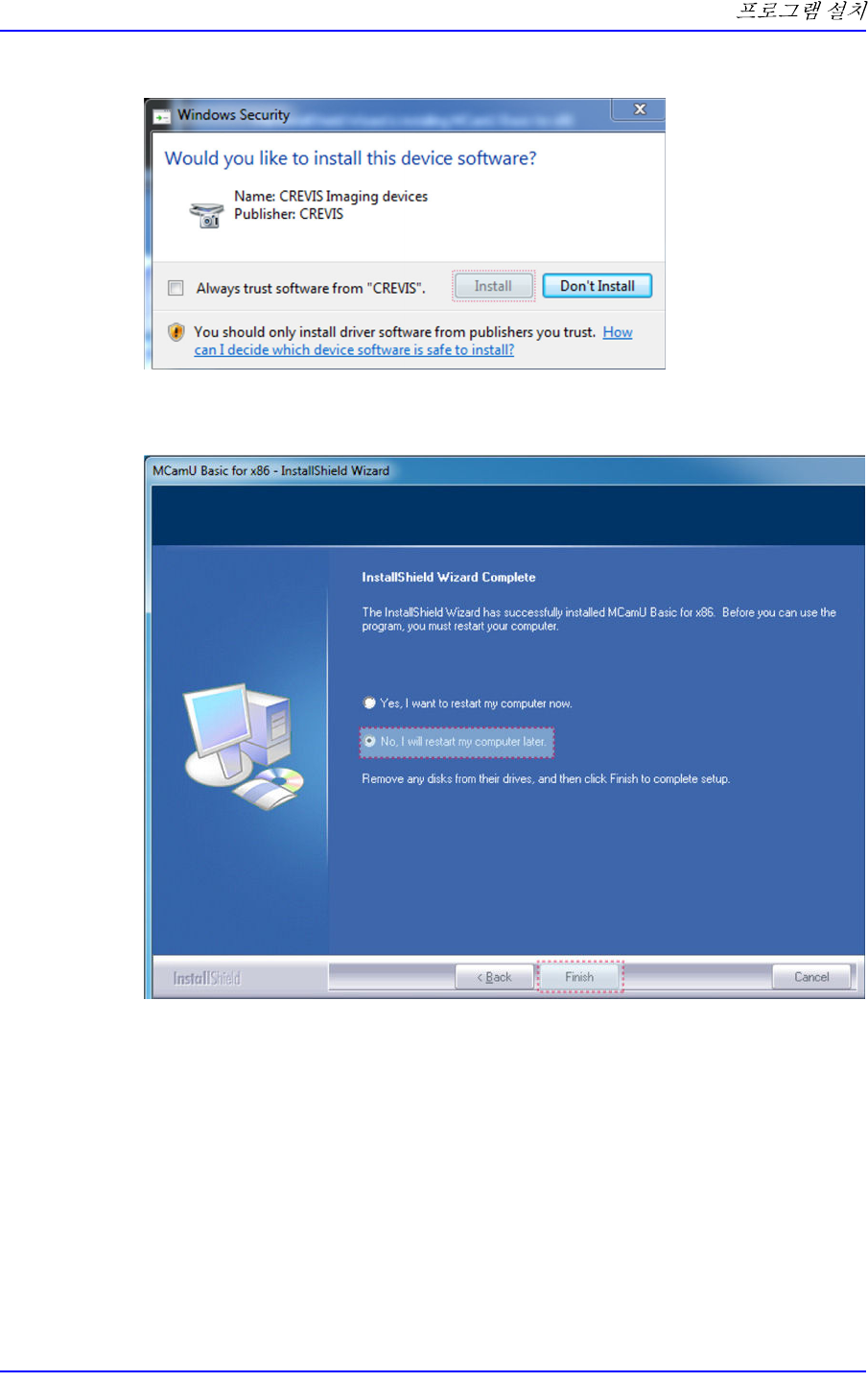 5. 프로그램 설치를 완료하고 PC를 재부팅하지 않는다는 옵션을 선택한 후에,