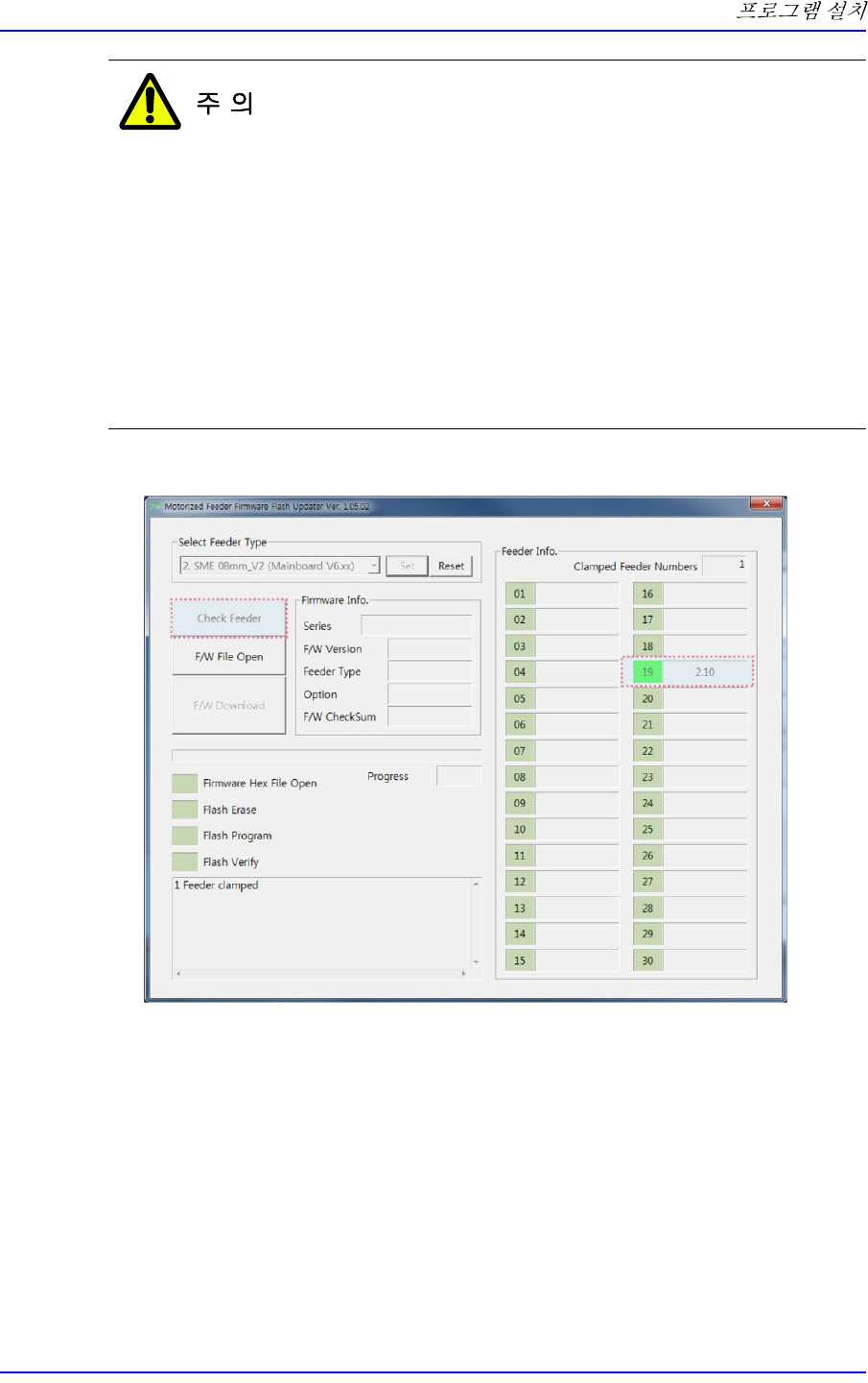 3. <Check Feeder> 버튼을 클릭하여 장착된 피더의 펌웨어 버전을 확인하십시오 .