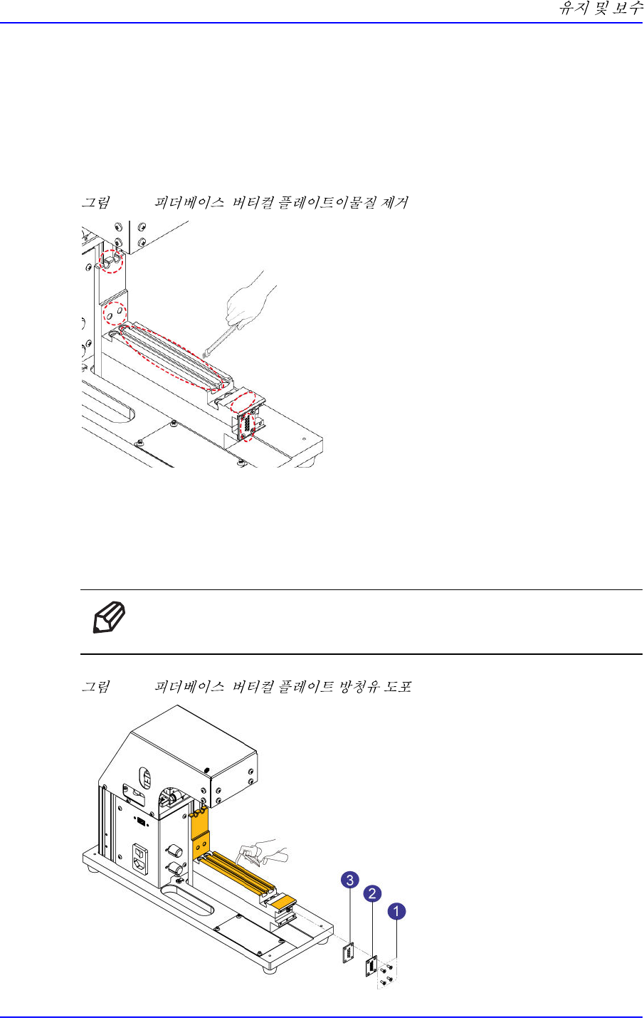 2. 피더베이스와 버티컬 플레이트에 방청유 를 도포하십시오 .