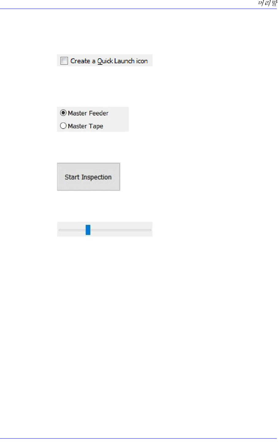 vii § 체크박스 제시된 기능의 사용 여부를 결정하거나 여러가지 옵션들 중에서 다중 선택 이 가능하게 합니다 . § 옵션버튼 여러 가지 옵션들 중에서 한가지만을 선택할 경우 사용되는 버튼입니다 . 한 버튼을 클릭하면 다른 버튼은 선택이 해제됩니다 . § 버튼 클릭하면 특정한 작업을 수행하는 버튼입니다 . § 슬라이더바 슬라이드 바를 이용하여 설정 값을 조절할 수 있는 박스입니다 .