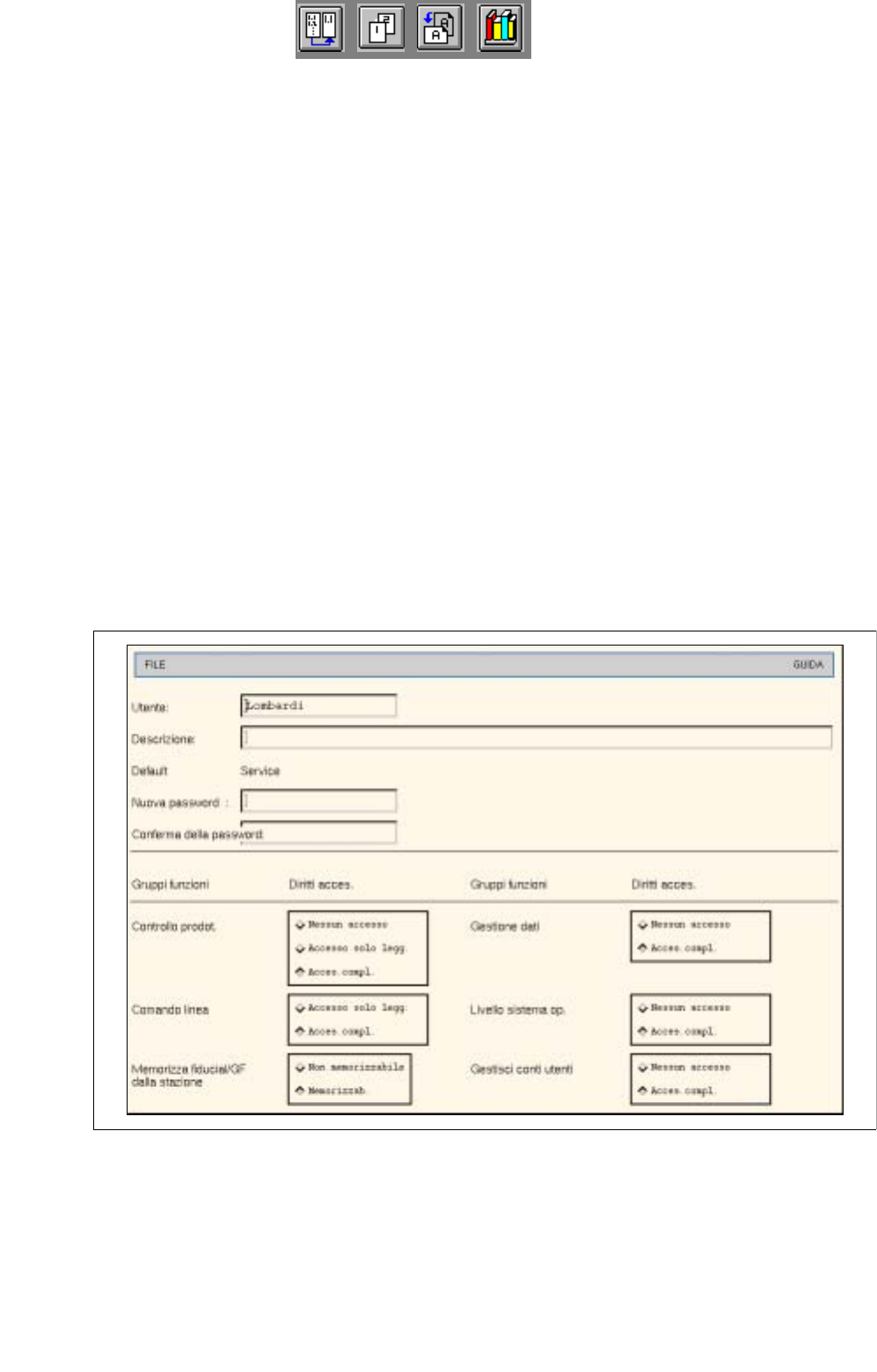 se questo pulsante è attivato significa che l’utente non ha nessun accesso al gruppo di funzioni