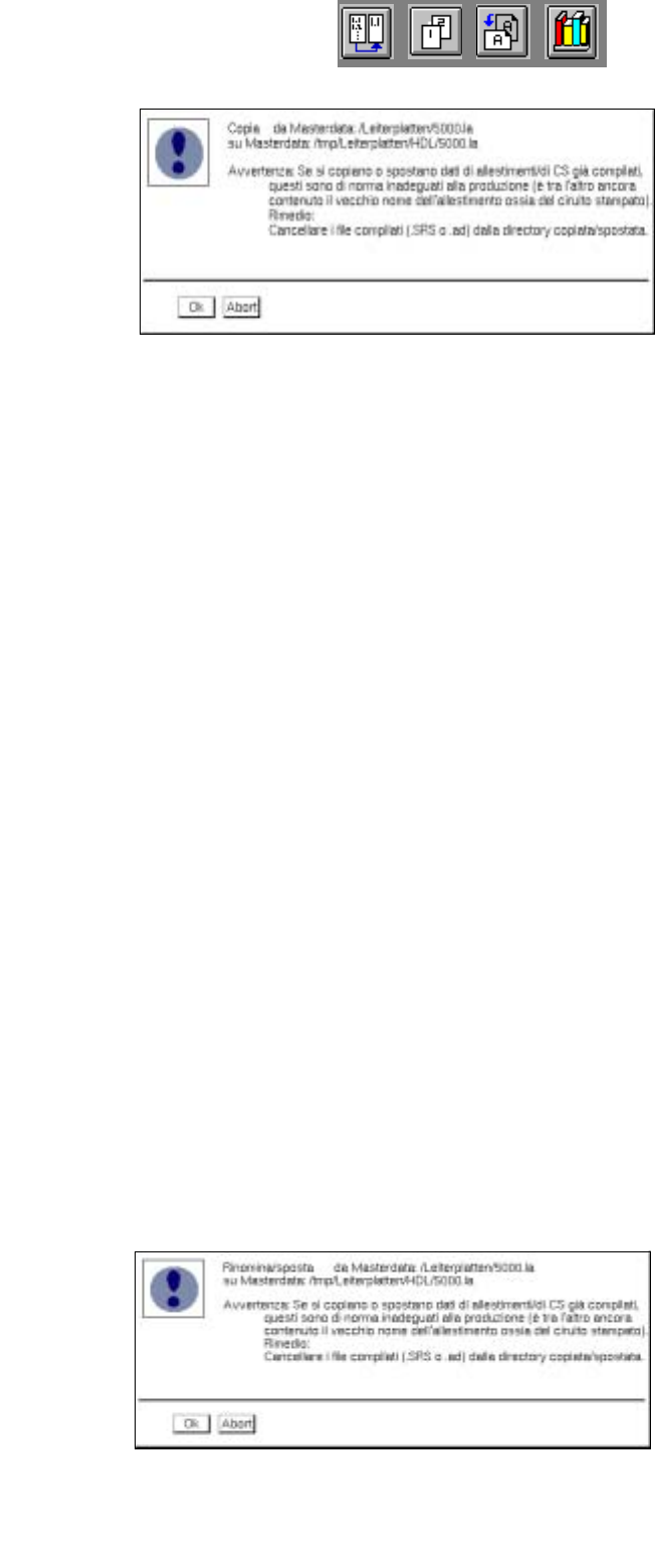 Manuale operatore del calcolatore di linea UNIX 4 Gestione dati Versione software 503.xx Edizione 0 2/2002 4.3 Ambiente di lavoro Manager dati 135 I t I I ● Confermare il box di dialogo "Copia di ..." con OK se…
