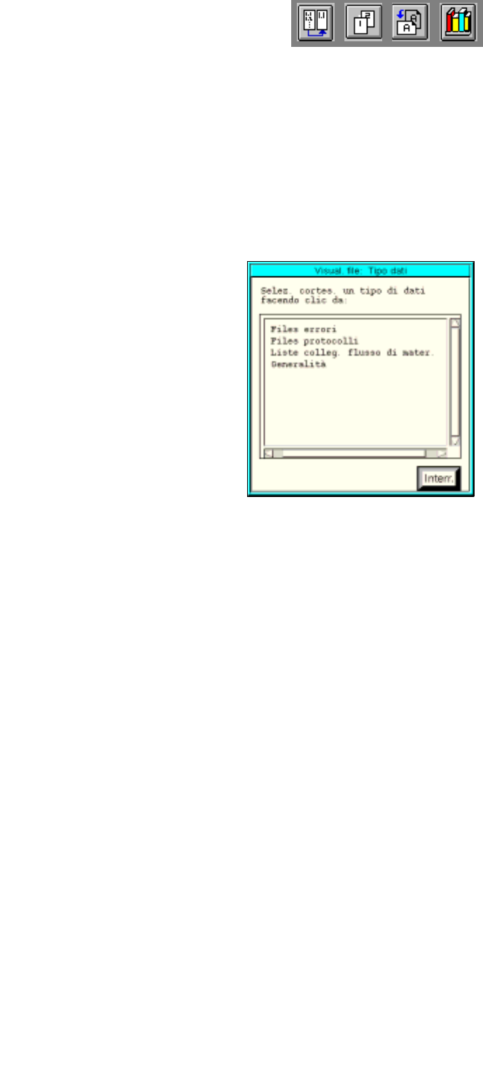 4 Gestione dati Manuale operatore del calcolatore di linea UNIX 4.5 Ambiente di lavoro Visual izzazione file Versione software 503.xx Edizione 02/2002 160 I t I I 4.5.2.3 Menu OPZIONI - Ti pi di dati Con l'aiuto di …