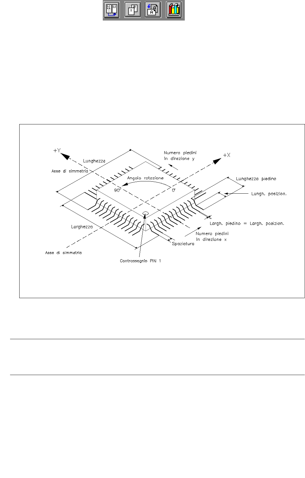 dopo la definizione di un gruppo piedini si può aprire la finestra per la descrizione di un modello piedini (v. fig.