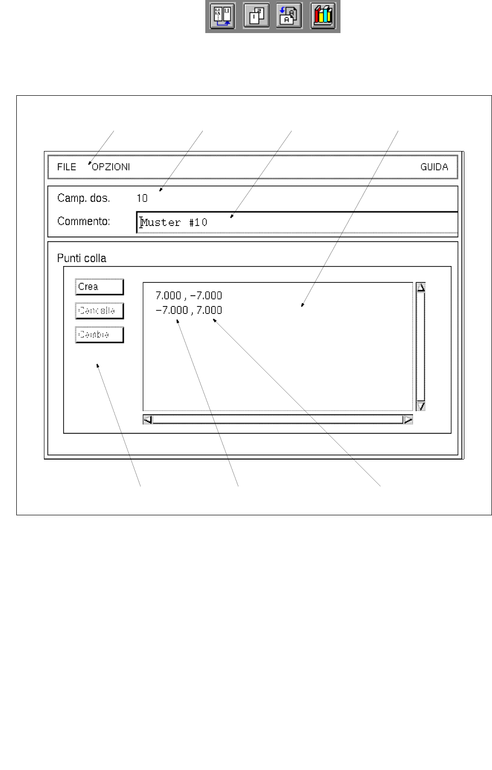 ● Fare clic sull'icona Campione dos. sul Desktop (oppure sulla voce "Editore camp. dos." sul menu