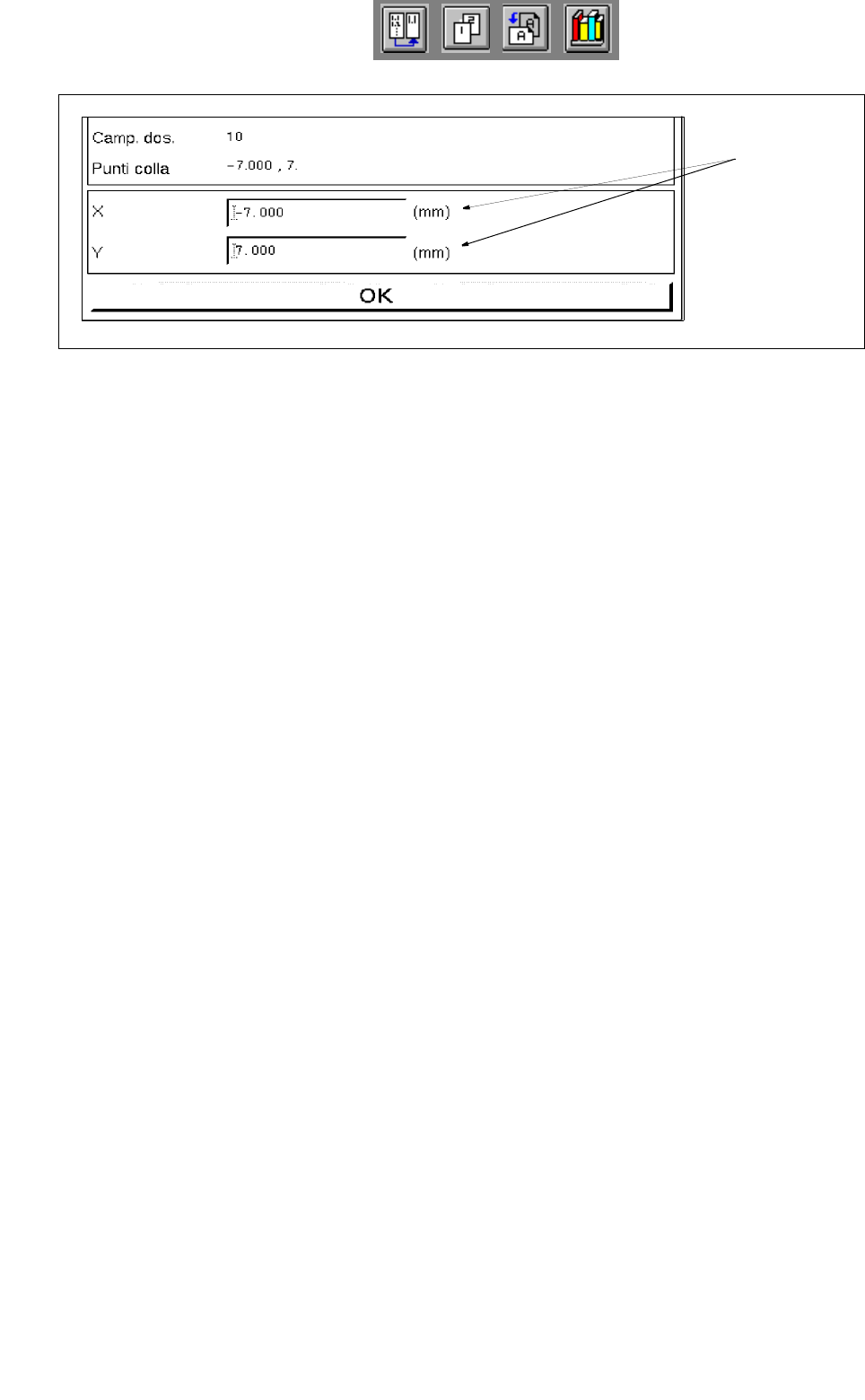 Si apre la finestra per l'editazione delle coordinate x e y (v. fig. 7.1.2).