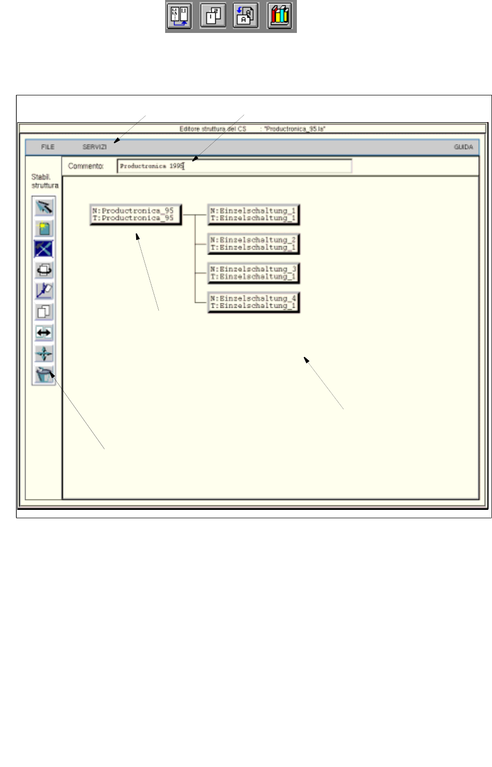 Fig. 8.1.4 Finestra di applicazione "Editore strutture" (mode struttura)