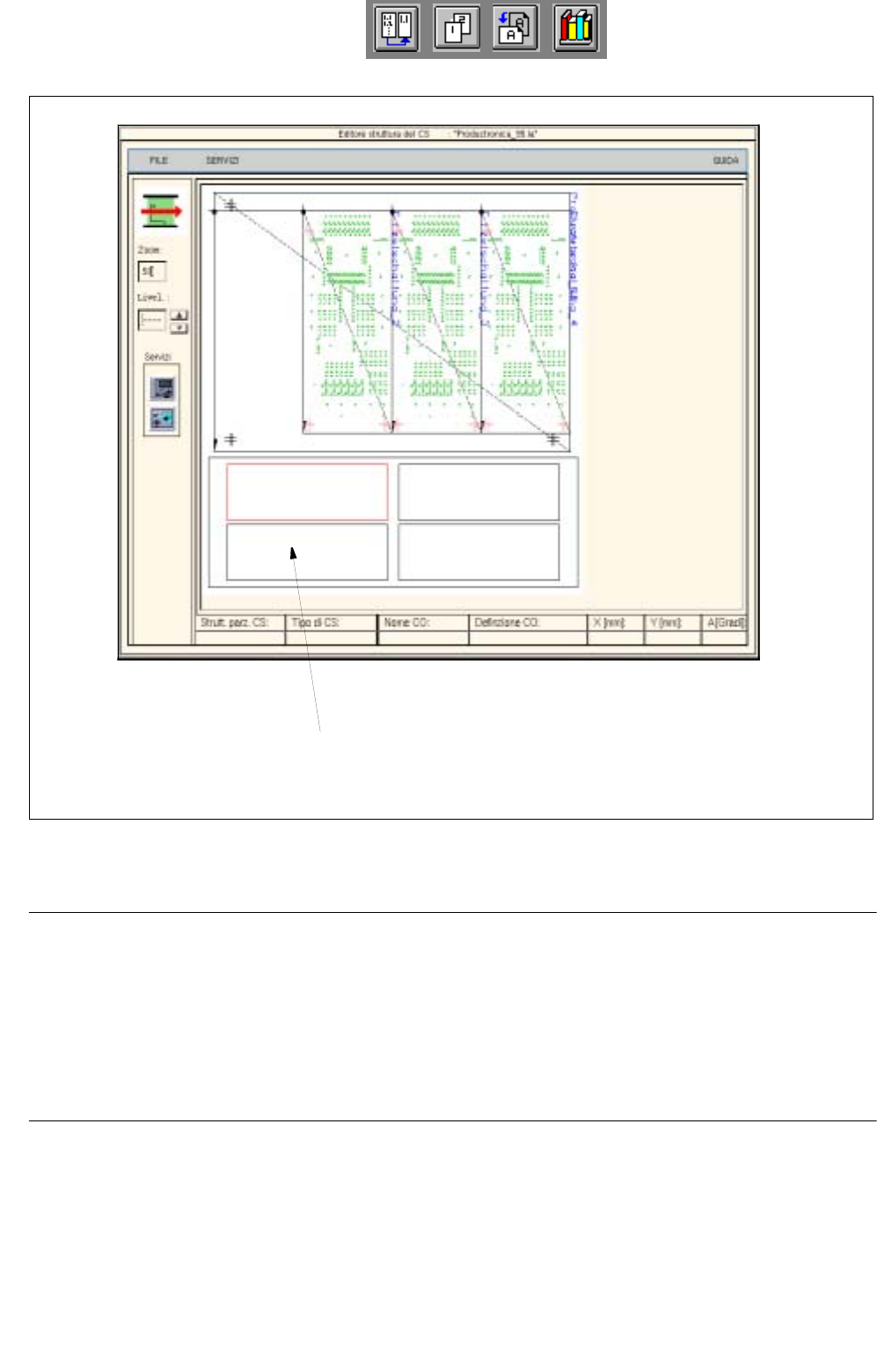 Fig. 8.1.7 Visualizzazione "mode grafica" con ulteriore grafica della struttura