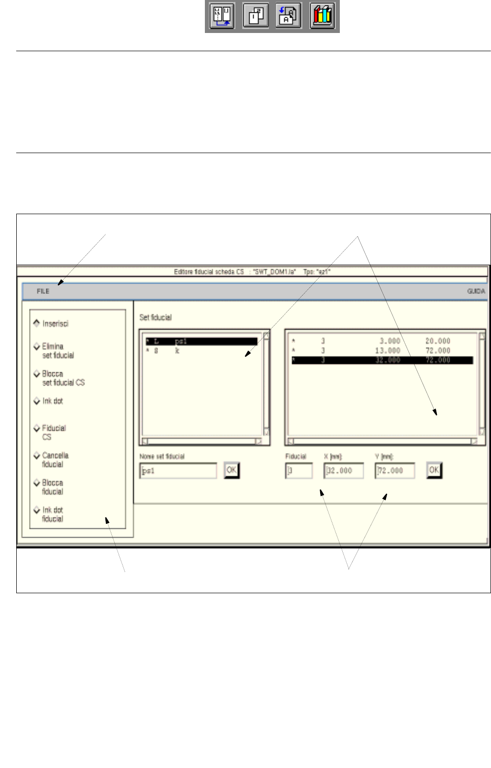 Nella zona editazione (v. fig. 8.1.10) si possono definire ed editarele fiducial della scheda e i set di fiducial della