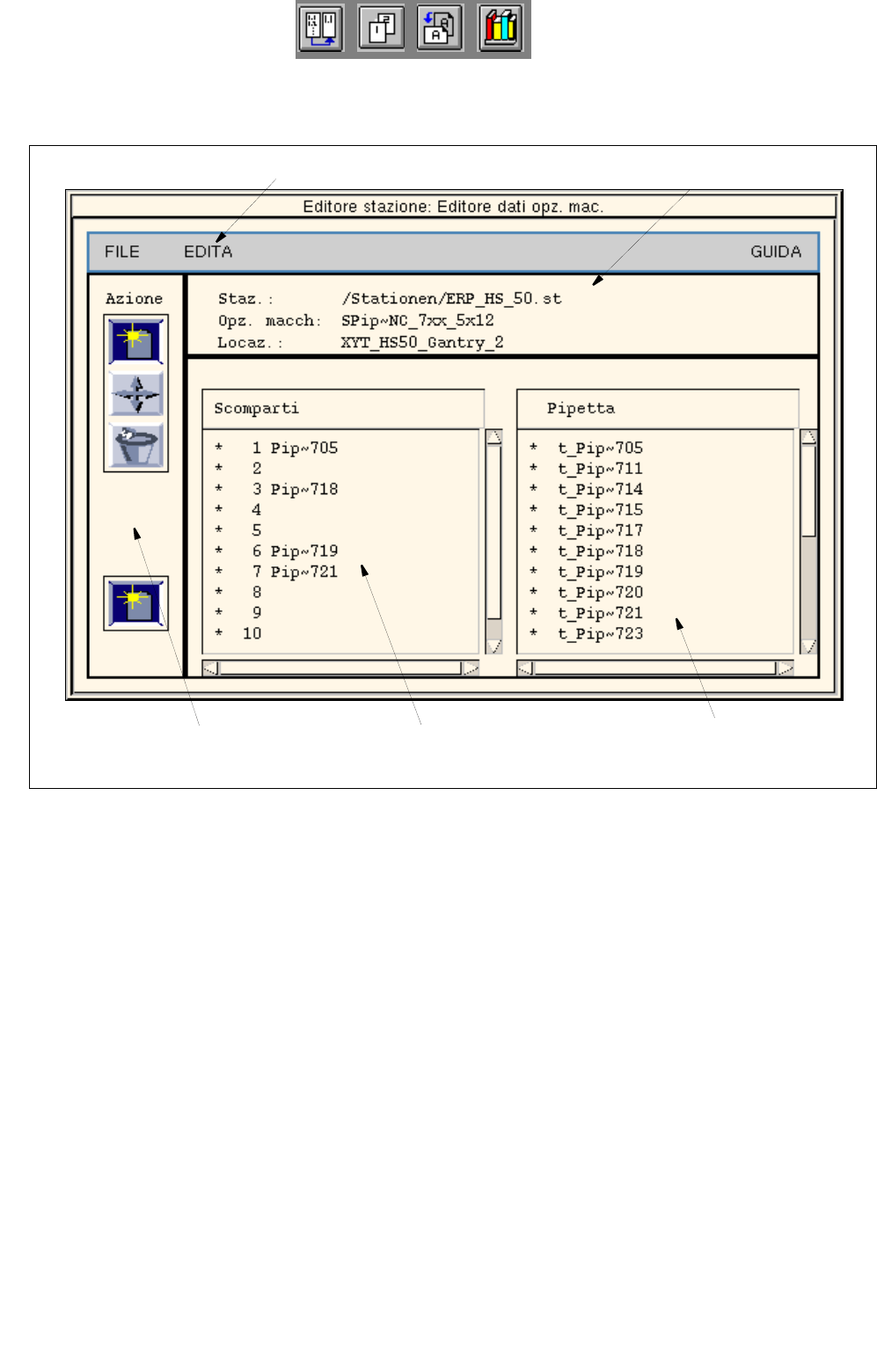 12 Mezzi di produzione / Configurazione stazione e linea Manuale operatore del calcolatore di linea UNIX 12.1 Editore configurazione Versione software 503.xx Edizione 02/2002 382 I t I I 12.1.3.4 Finestra di applicazione…