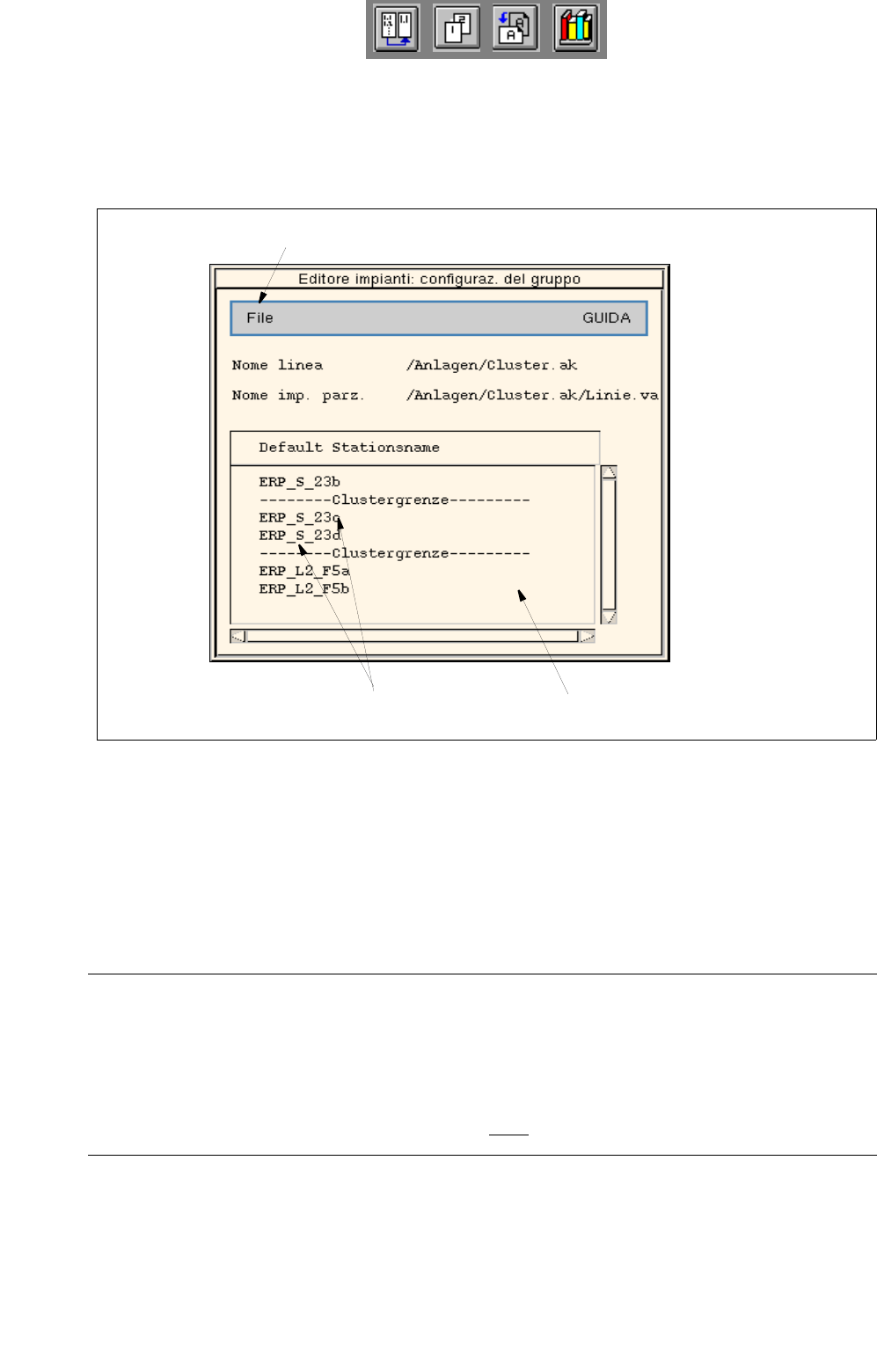 12 Mezzi di produzione / Configurazione stazione e linea Manuale operatore del calcolatore di linea UNIX 12.2 Editore impianto Versione software 503.xx Edizione 02/2002 396 I t I I ● Selezionare l’impianto parziale "…