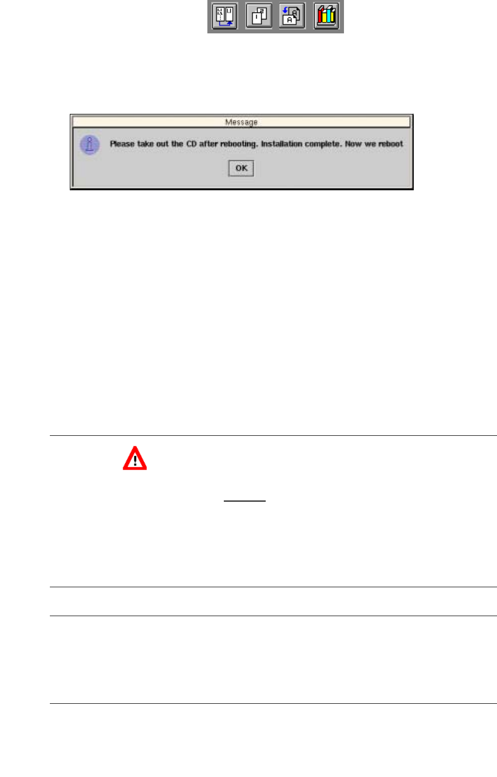 Dopo ca. 3 minuti appare sul monitor un messaggio che invita a ribootare il sistema.