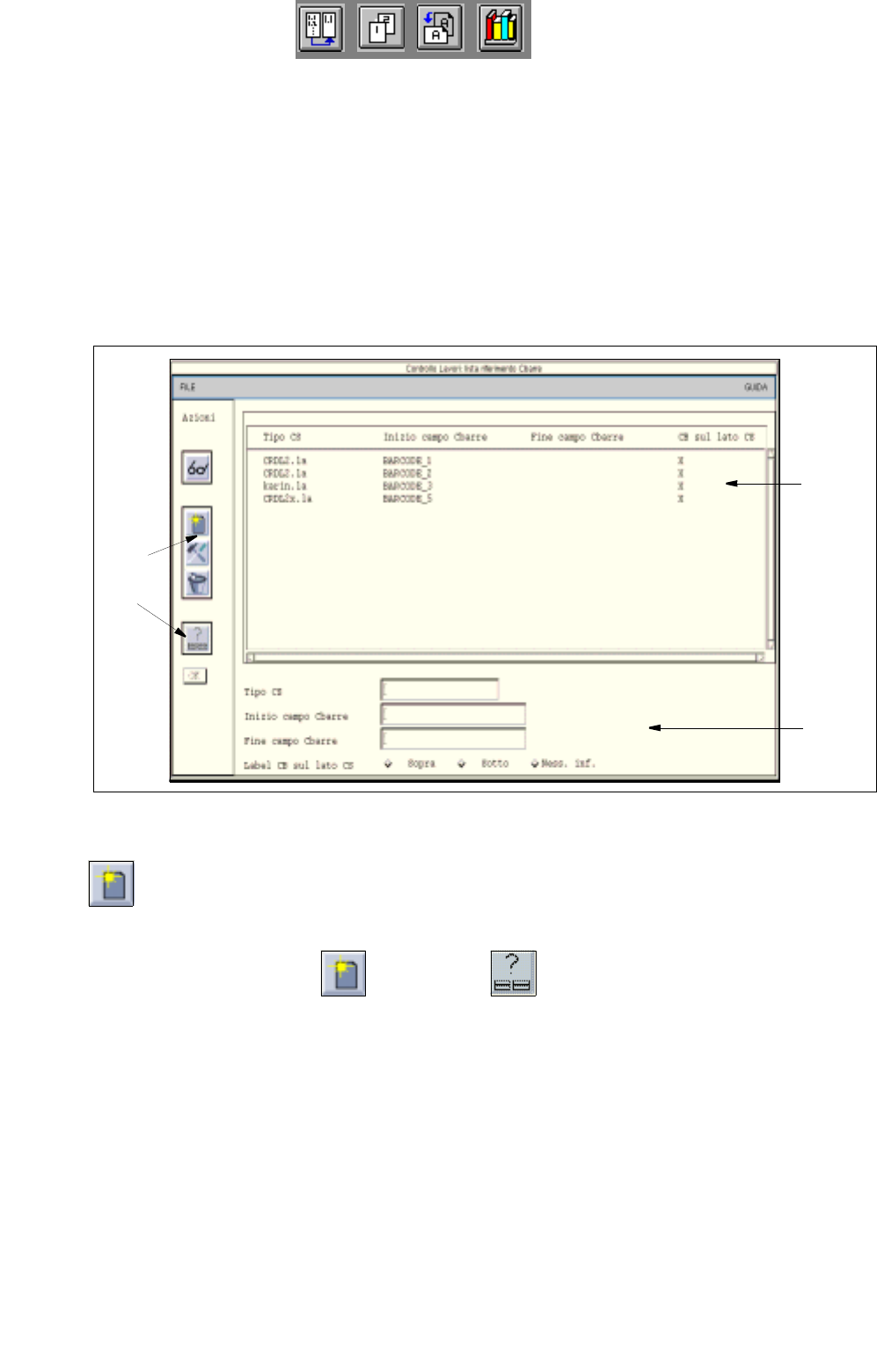 - Edita le allocazioni dei codici a barre ed imposta il lato del CS per la posizione del