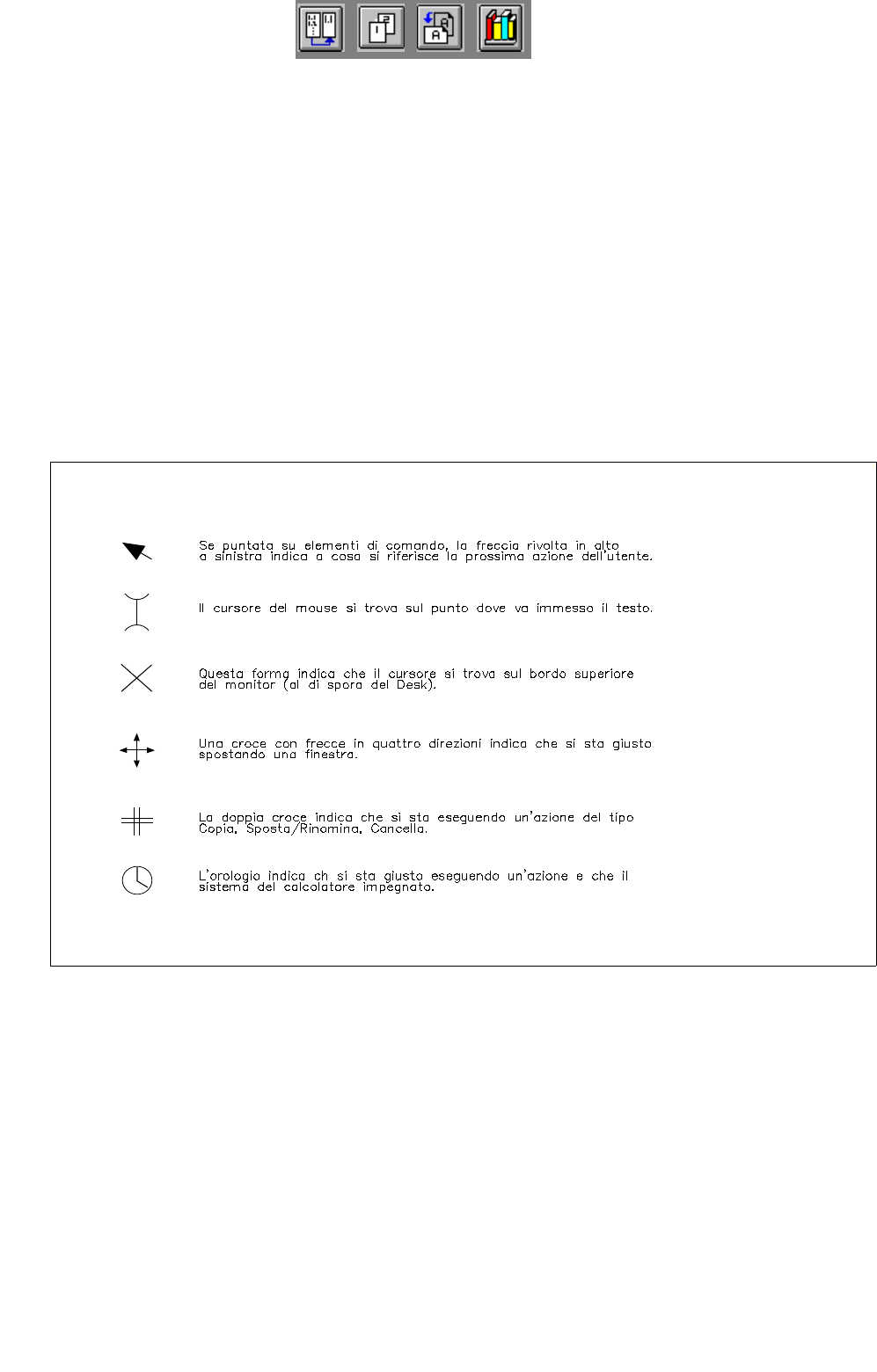 Fig. 2.1.2 Forme del cursore del mouse e loro funzioni