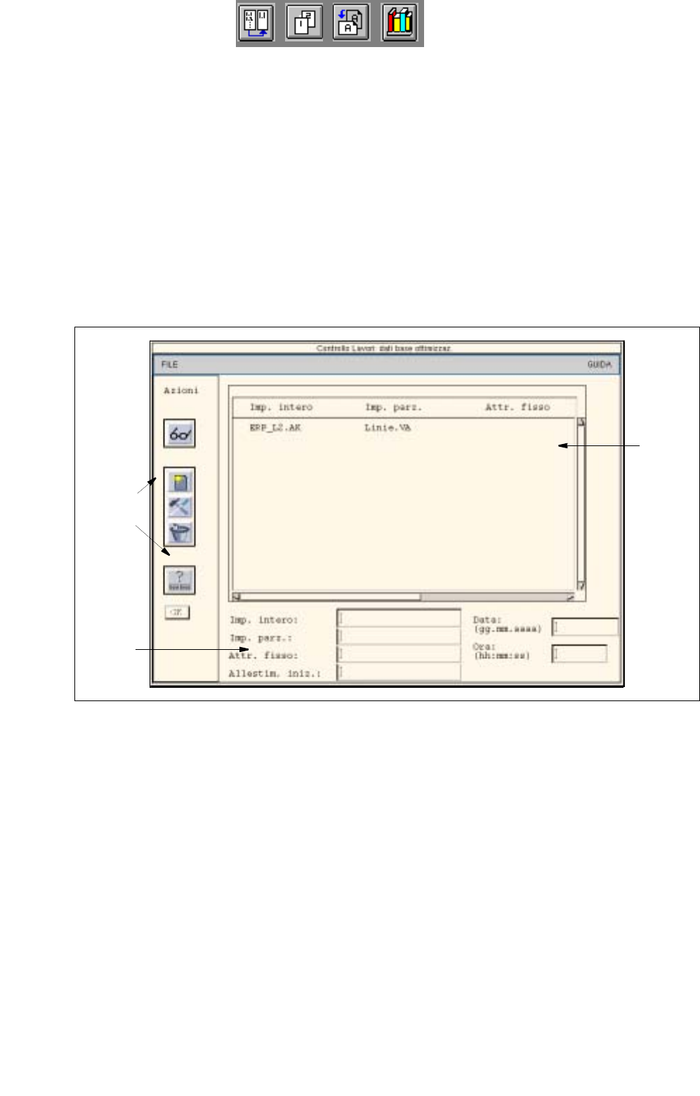 impianto intero e su quale impianto parziale va espletato il File di batch e se va impiegato un attrezzaggio fisso.