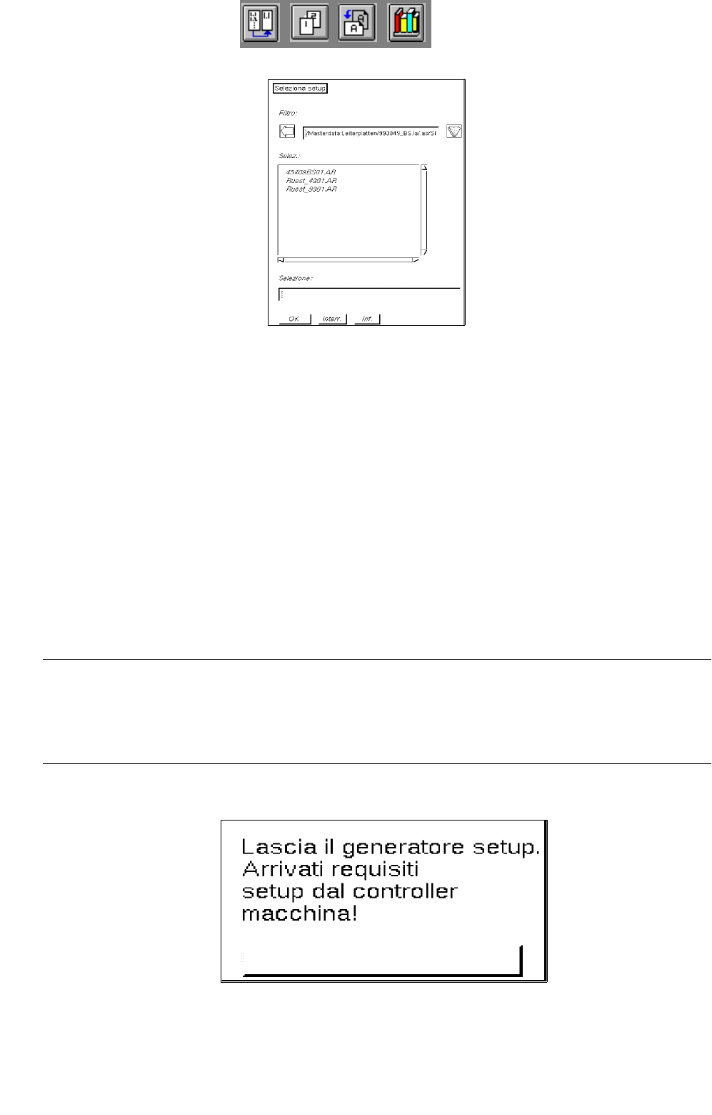 Manuale operatore del calcolatore di linea UNIX 14 Controllo / Moduli di comando Versione software 503.xx Edizione 02/2002 14.5 Generatore di setup GSU 483 I t I I ● Selezionare con doppio clic l'allestiment o "…