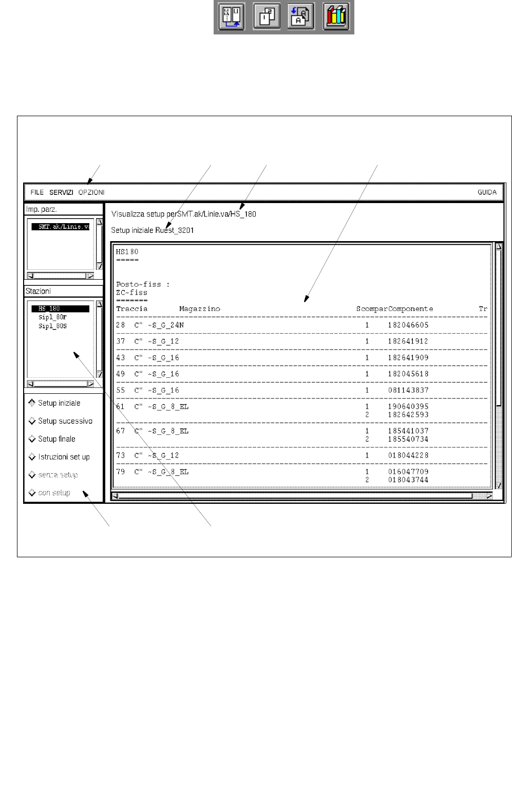 Qui l'operatore può farsi visualizzare l'allestimento di un determinato tipo di CS e se necessario far-