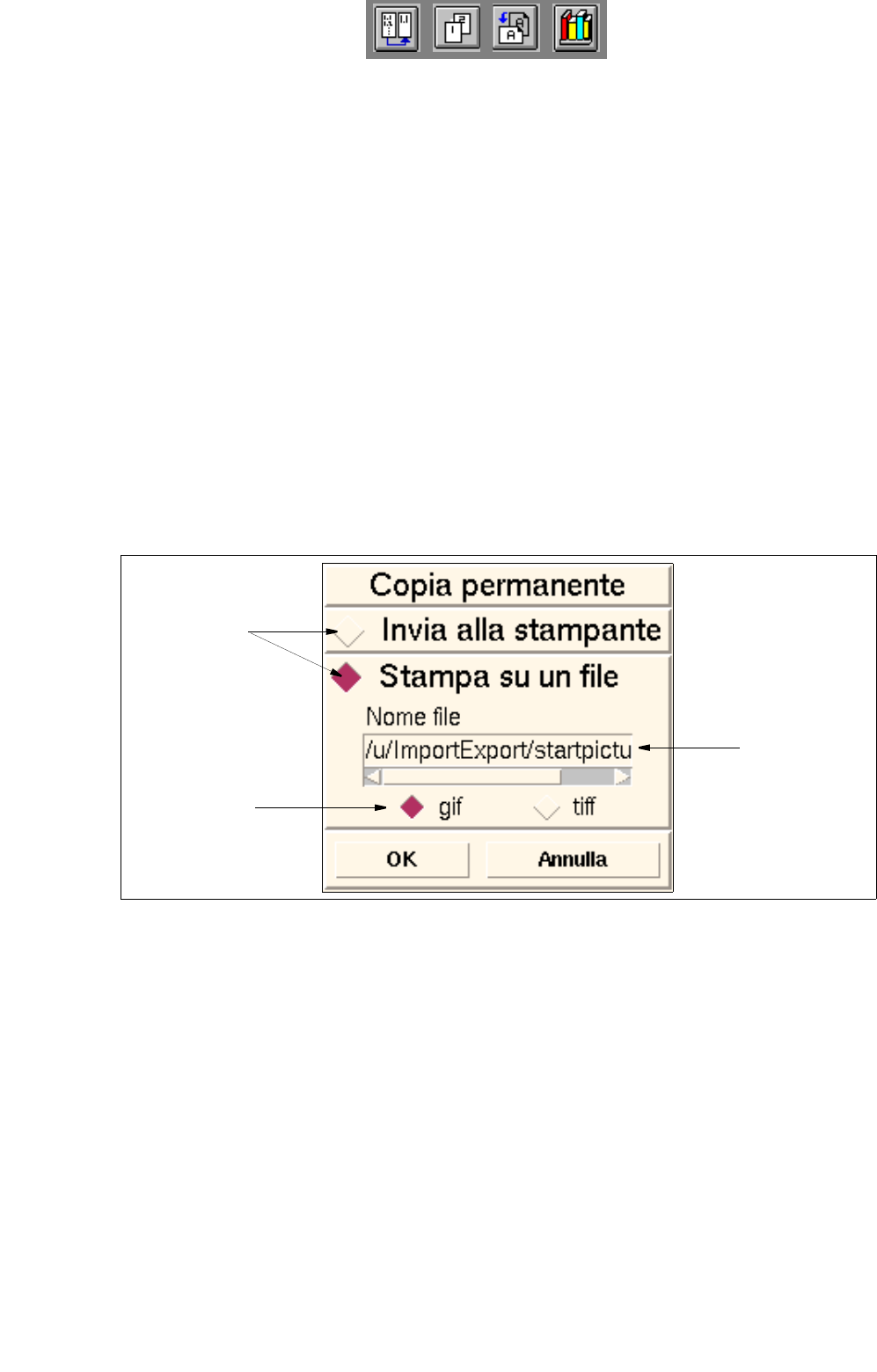 ● Attivare il pulsante Stampa su un file qualora la copia permanente vada stampata su un file.
