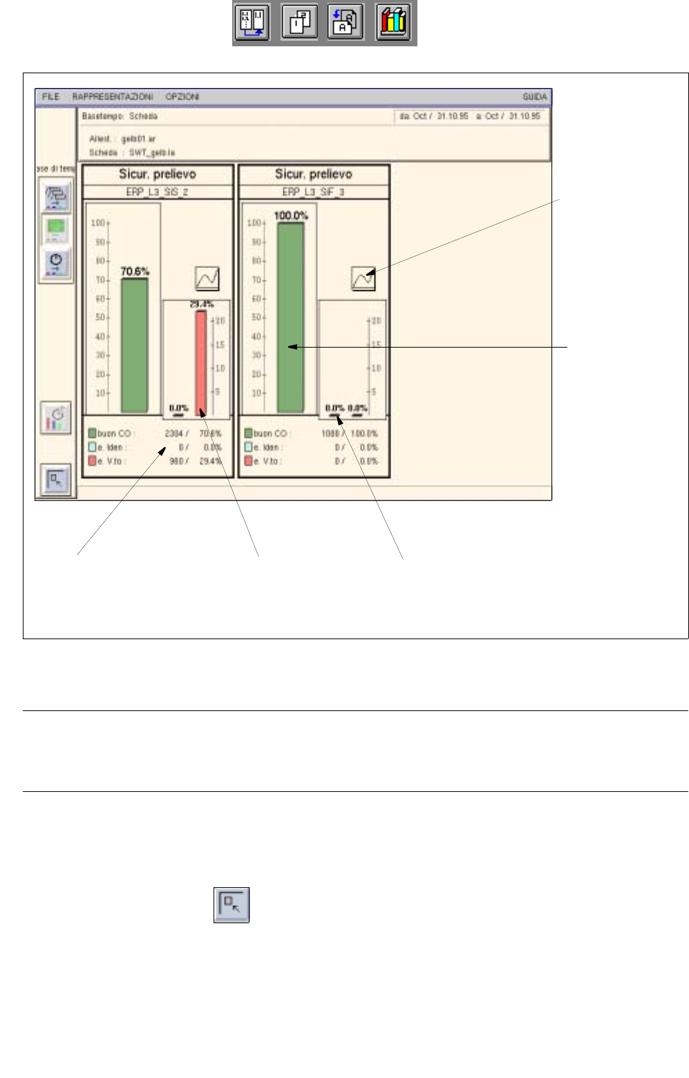Per ogni stazione viene rappresentato un diagramma con la sicurezza di prelievo calcolata