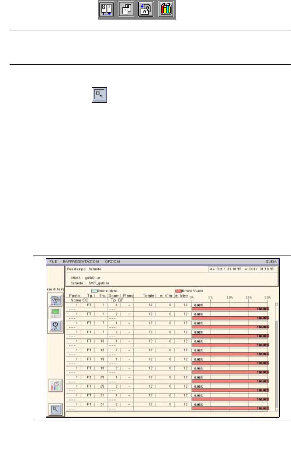 errori di vuoto e di identificazine occorsi vengono rappresentati sia in modo assoluto (tabella) che in modo
