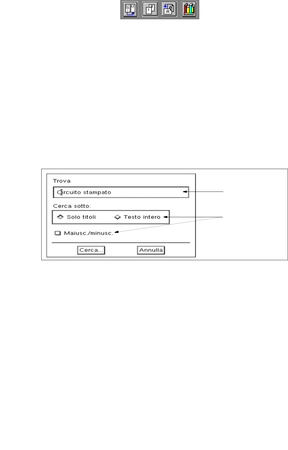 Con ciò si apre la finestra per l’immissione del testo di ricerca.
