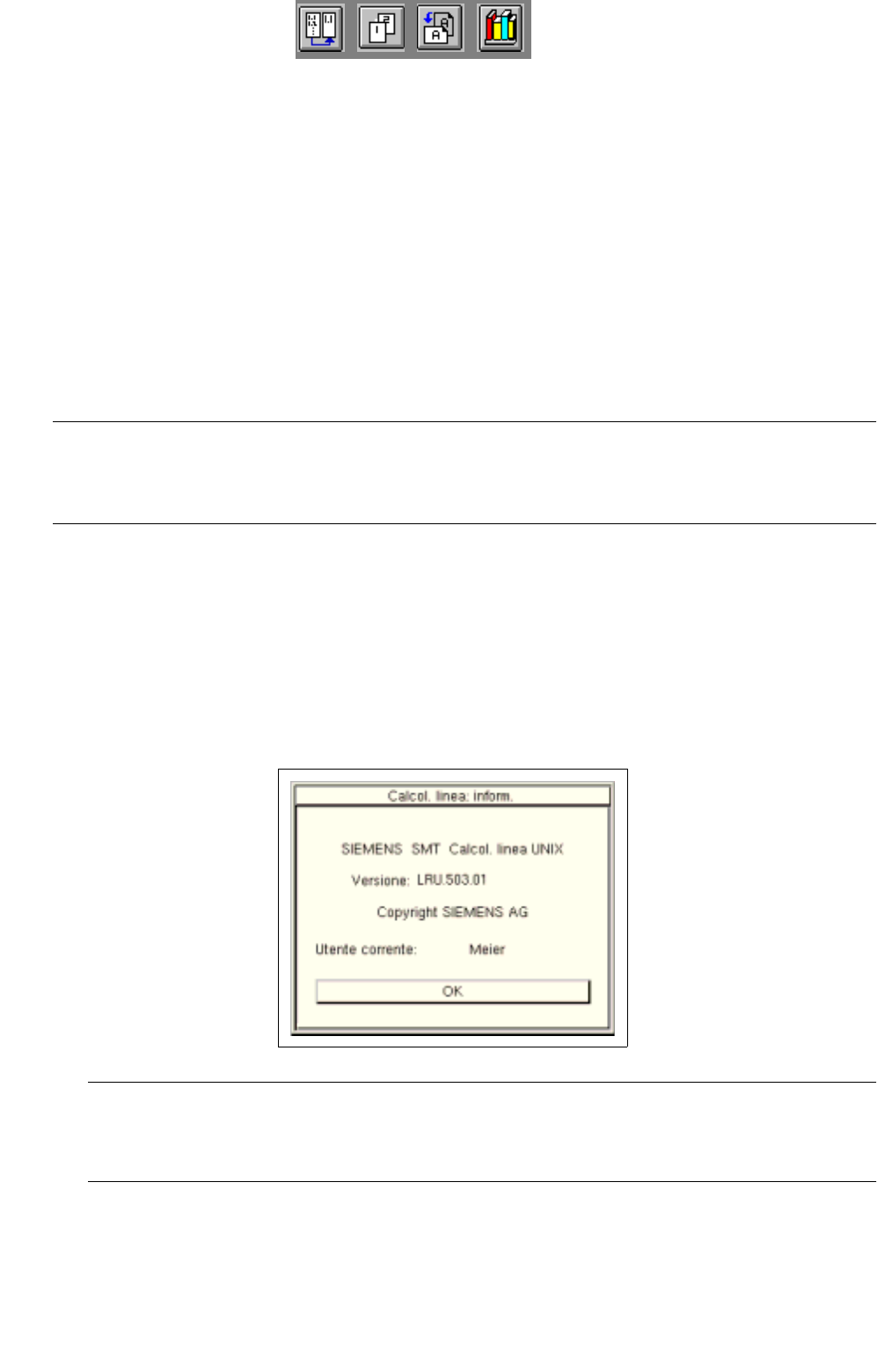 Manuale operatore del calcolatore di linea UNIX 3 Desktop (Principale) Versione software 503.xx Edizione 0 2/2002 3.1 Introduzione 79 I t I I - Zona inferiore co n il pulsante selezione lin ea e la zona visualiz zazione …