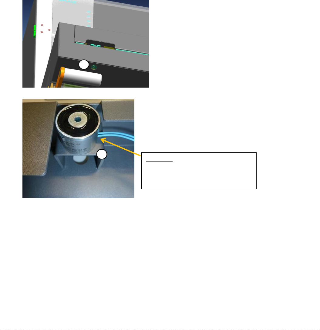 Der Haltemagnet ist mit 3 Schrauben "NB602 M4x8" (03005643) auf einen Podest (1) in der NSM