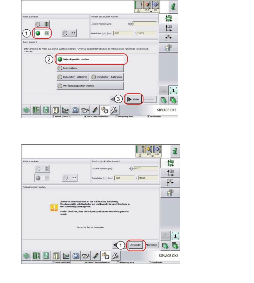 Interne Serviceanleitun g WPC5 / WPC6 Seite 4-125 4.2 Zuführachse kalibri eren Entnehmen Sie vor d er Kalibrierun g alle Flächenm agazinträger (FMT ) aus dem WPC. Die Kalibrierung der Z uführ achse umf asst f olgende F…