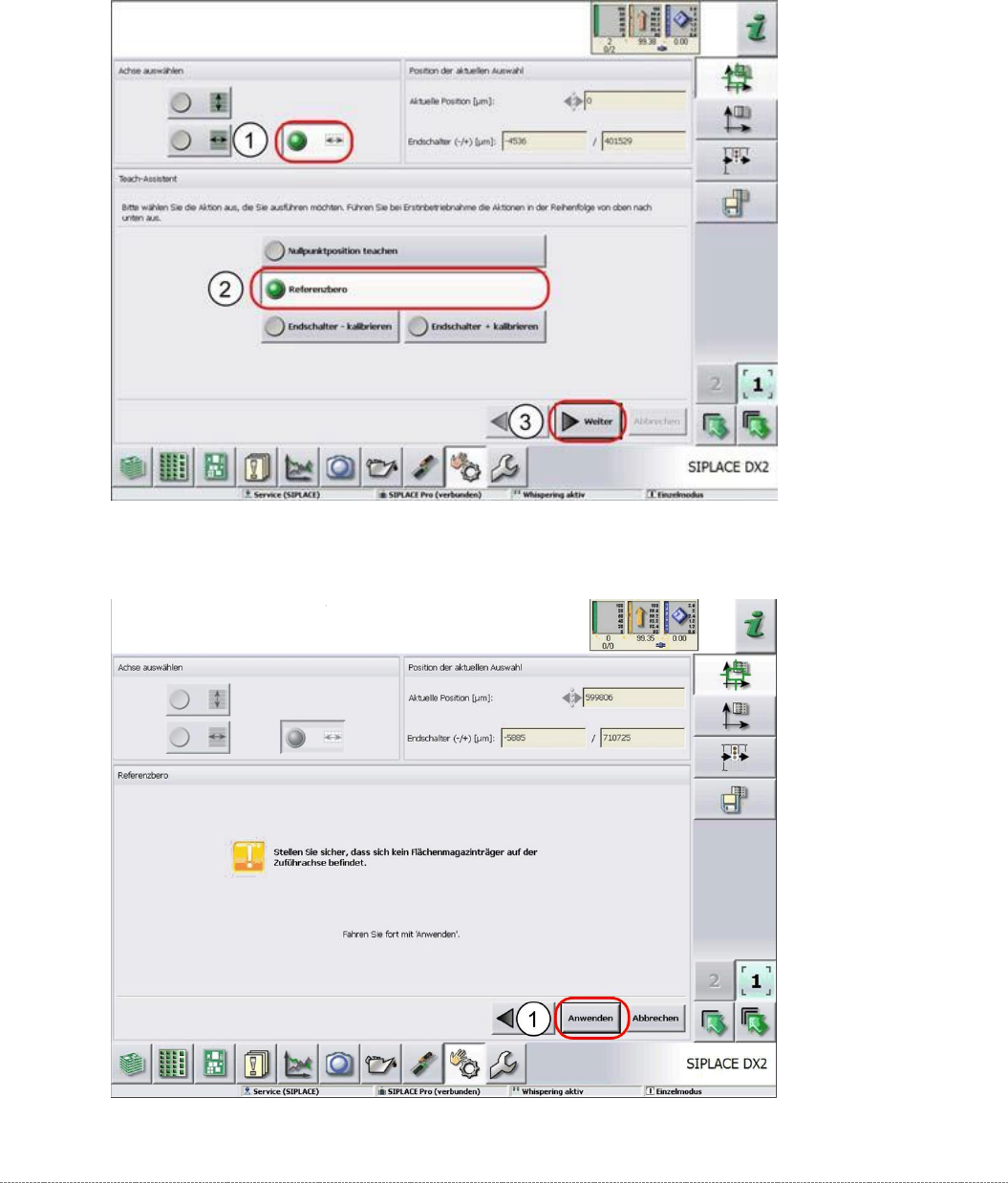 Interne Serviceanleitun g WPC5 / WPC6 Seite 4-137 4.3.2 Referenzbero ➢ W ä hlen Sie die Ladeach se aus (1). ➢ W ä hlen Sie die Funkt ion Referenzbero aus (2). ➢ W ä hlen Sie Weiter (3). ➢ Befolgen Sie den a ngezeigten …