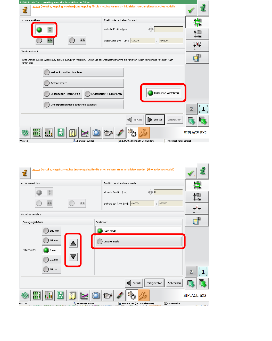 Hubachse ausgewählt ⇨ Hubachse Verfahren angewählt ⇨ Weiter.